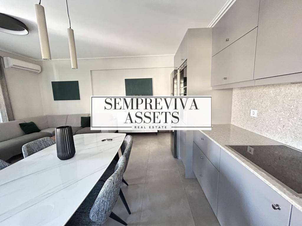 For rent in Glyfada, in the Pyrnari area, a newly built 3rd-floor whole-floor apartment constructed in 2022, with a total surface of 85 sq.m. This residence combines modern design, comfort and a unique sense of openness thanks to its breathtaking panoramic sea view. From the moment you enter the apartment, the abundant natural light and the open horizon create an atmosphere of tranquility and understated luxury. The apartment features a spacious living room with an open-plan kitchen, two bedrooms, one of which is en-suite, and an additional bathroom. The layout has been designed with functionality and ergonomics in mind, while the numerous storage spaces comfortably cover everyday needs. The property is offered fully furnished and fully equipped with electrical appliances, including refrigerator, kitchen with oven and hobs, dishwasher and washing machine. It also includes three air-conditioning units. Additional features include autonomous oil heating, solar water heater, security door, video intercom, alarm system, electric awnings and shutters, aluminum frames with double-glazed windows and insect screens. The spacious front balcony, with a southeast orientation, offers stunning unobstructed panoramic sea views, creating the perfect setting for relaxing moments at any time of the day. What truly makes this property stand out, however, is the exclusive use of the private rooftop terrace. This unique space features a jacuzzi and spectacular sea views, making it ideal for relaxing evenings, gatherings with friends, barbecue moments and enjoying the Mediterranean lifestyle under the open sky. In the basement there is a private parking space with provision for electric vehicle charging, as well as a storage room of approximately 10–12 sq.m. The location is particularly convenient, very close to the central market area that covers all daily needs, while it is only 2 km from the center of Glyfada. Price: €1,850 Two security deposits are required. The property is offered fully furnished and fully equipped.