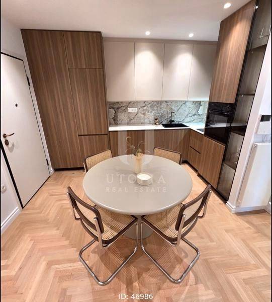 Pangrati - Apartment 50sqm fully furnished, bedroom, levels 1, 5th, penthouse, fully renovated, year built 1974, renovation year 2026, energy class C, living room, hall, kitchen, bathroom, heating type: central (natural gas), air condition, luminous, unobstructed view, frontage, electric roller shutters, solar heater, balconies, elevator, loft storage, thermal shut-off frames, double glazed windows, door screen, wood & tile floors, three phase electricity, secure door, residential zone, close to hospital (up to 1000m), close to sea (up to 100m).