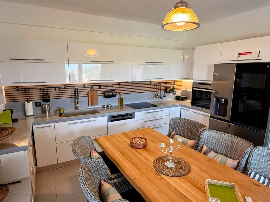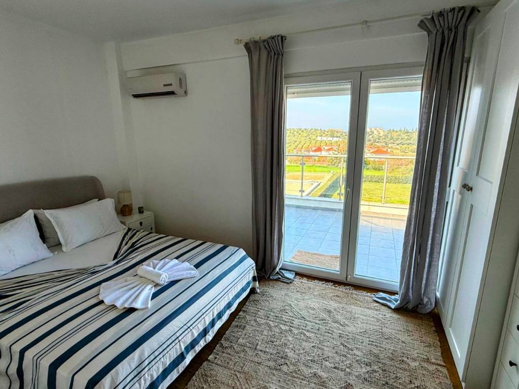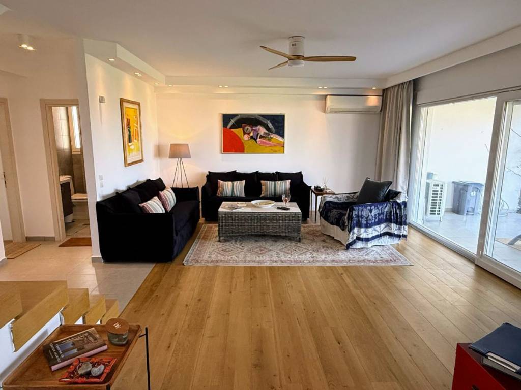 luxury mare vista villa. with amazing view. renting per day ,max 8 people ,with 4 double bedrooms,3 bathrooms,big kitchen and hudge living room,the outside yard is 1000 qm big .renting prices =june and september 380 euros per day, july and august 450 euros per day.starlink internet.
