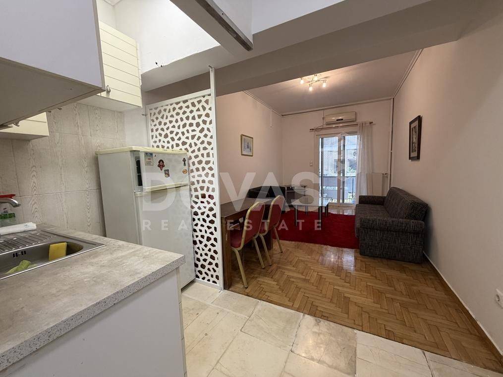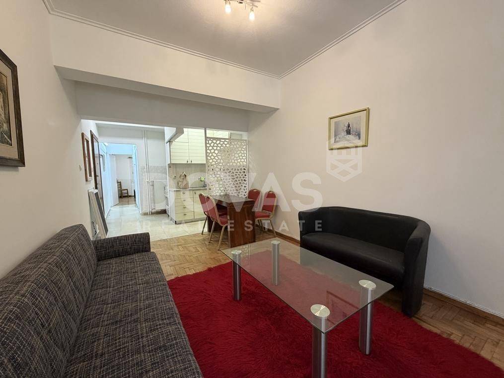 Pangrati - Apartment 60sqm bedrooms 2, levels 1, raised ground floor, very good condition, year built 1970, energy class E, living room, kitchen, bathroom, heating type: central (oil), quiet, painted, electric roller shutters, aluminum frames, double glazed windows, wood & tile floors, secure door, residential zone, commercial use.