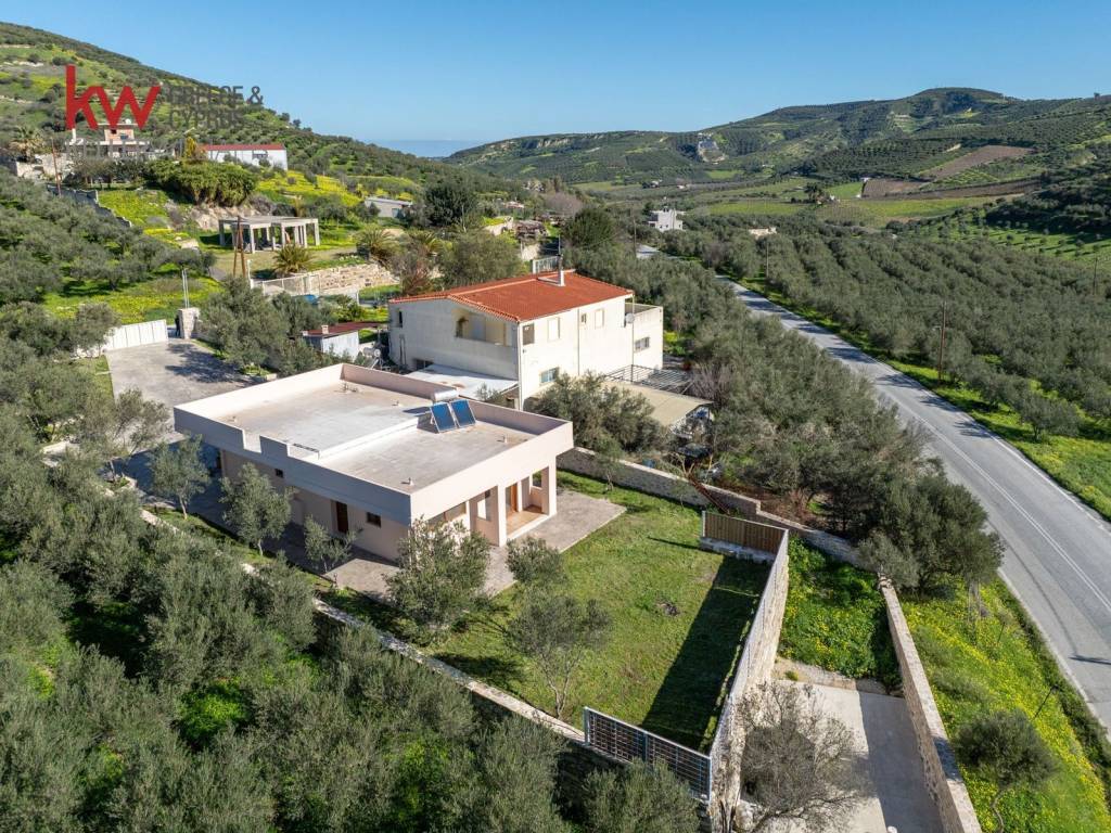 Detached house for sale – 105 sq.m., built in 2025 on a 1,100 sq.m. plot, near the village of Dafnes, just 15 minutes from Heraklion. The residence is ideal as a permanent home or a holiday property and is also suitable for short-term rental, as the space combines comfort, security, and functionality. The outdoor area, fenced with natural stone from the region, respects the environment and blends harmoniously with the landscape. The olive trees, the paved cobblestone surface, and the large outdoor space offer the perfect opportunity for building a swimming pool or garden, while the view of the lush green landscape and surrounding hills creates a unique setting of peace and tranquility. The property is located in a quiet area with easy access from an asphalt road. Features: Bedrooms: 3 spacious bedrooms Bathrooms: 2 Living room: With large openings that fill the space with natural light, creating a warm and welcoming atmosphere Kitchen: Fully equipped, with a smart design that combines functionality and aesthetics Floors: High-quality tiles Frames: Synthetic aluminum frames with triple glazing for thermal and sound insulation Heating / Cooling: Autonomous heating with a Hitachi heat pump and full air conditioning Smart Home: Remote-controlled entrance gate, CCTV system, and mobile control capability Electric car charging and Energy Certificate Class A Price: €338,000 Information: Dimitris Androulakis – +30 6974 217815 ✉️ Email: dandroulakis@kwgreece.gr Website: www.kwcp.gr