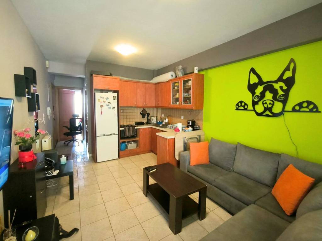 Spacious, dual-aspect and very bright fourth-floor apartment of 47 sq.m. in Kaisariani. The apartment features 1 bedroom, 1 bathroom, a living room, kitchen, and hallway. It is dual-aspect, well-ventilated, and filled with natural light. It includes aluminum window frames with double glazing and insect screens, autonomous oil heating, air conditioning units, and a security door. The apartment also offers two spacious balconies with awnings—one front-facing and one auxiliary—providing abundant natural light throughout the day. Additionally, there is extra storage space, as the property includes an 8 sq.m. storage room in the building’s basement. It is located in a very central area, approximately a 10-minute walk from Evangelismos and the University Campus, and is also very close to bus and trolley stops. It is an ideal choice for investment, both due to its layout and its excellent location.