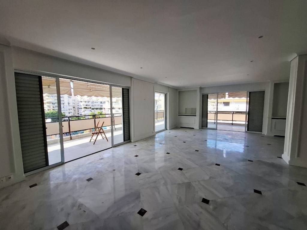 Γωνιακό διαμέρισμα 5ου ορόφου, σε υπέροχη πολυκατοικία κατασκευής 1985, στα όρια Παλαιού Φαλήρου με Άλιμο, 100 μόλις μέτρα από παραλία Μπατη, δίπλα στη στάση τραμ Μουσών. Πρόκειται για ένα φωτεινό και ευάερο διαμέρισμα 193τμ, με 100τμ περίπου μπαλκόνια, το οποίο αποτελείται από ένα σαλόνι, όπου δεσπόζουν το μαρμάρινο δάπεδο και ένα εντυπωσιακό τζάκι, ξεχωριστή κουζίνα, ένα master bedroom με ενσωματωμένο μπάνιο, 2 επιπλέον υπνοδωμάτια, δυο μπάνια και ένα WC. Η θέρμανση είναι κεντρική φυσικού αερίου και διαθέτει και ηλιακό θερμοσίφωνα. Το διαμέρισμα διαθέτει μια extra 2η κλειστή υπόγεια θέση στάθμευσης με μηνιαίο μίσθωμα 200 ευρώ.