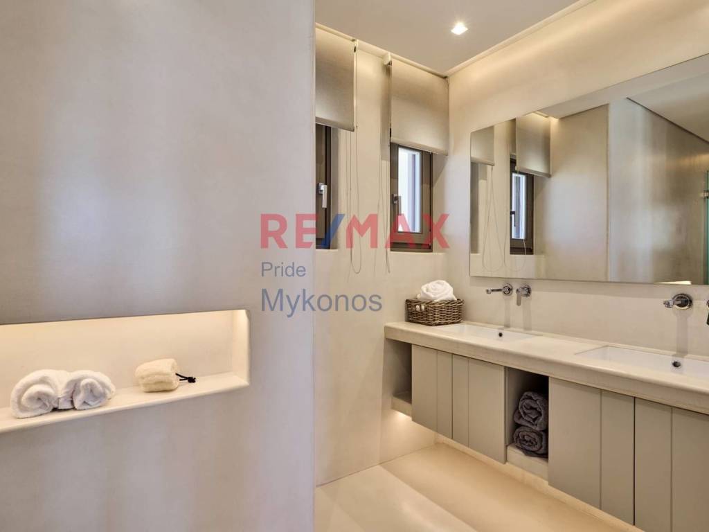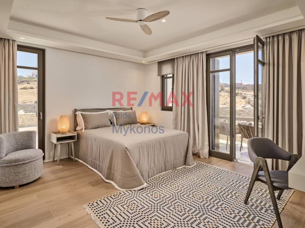 Villa For sale, floor: Basement, Ground floor, 1st (3 Levels), in Mykonos. The Villa is 520 sq.m. and it is located on a plot of 7.750 sq.m.. It consists of: 6 bedrooms (2 Master), 6 bathrooms, 1 wc, 2 kitchens, 1 living rooms and it also has 1 parkings (1 Open), Air conditioning, Solar water system are also available, it has Wooden frames, the energy certificate is: B+ and its floors are Tiles, Wooden. The property's status is: Freshly painted, Excellent condition, it has Sea, Mountain view. The Villa is Painted, Furnished, Bright, Ramp / Wheelchair access, Modern and it also has the following unique features and advantages: Window Screens, Storage, Internal staircase, Swimming pool, Garden, Security door, Gym. Price: €4.200.000. Remax Pride Μύκονος, contact phone: 2289077737, email: mykonosremax@gmail.com, website: