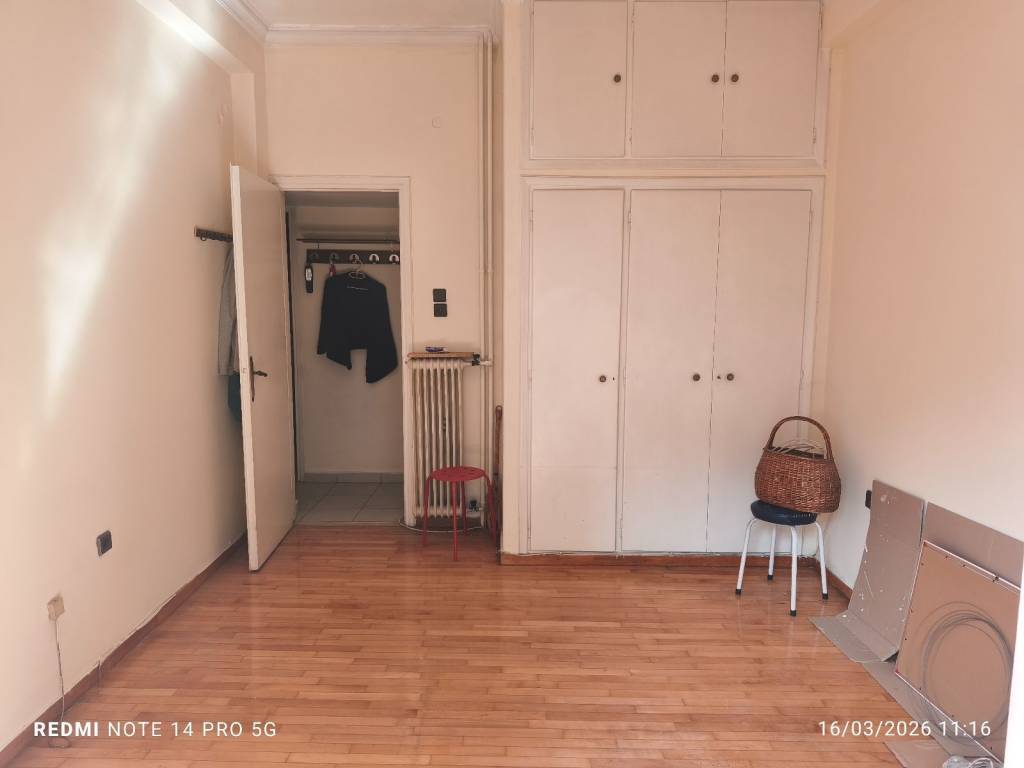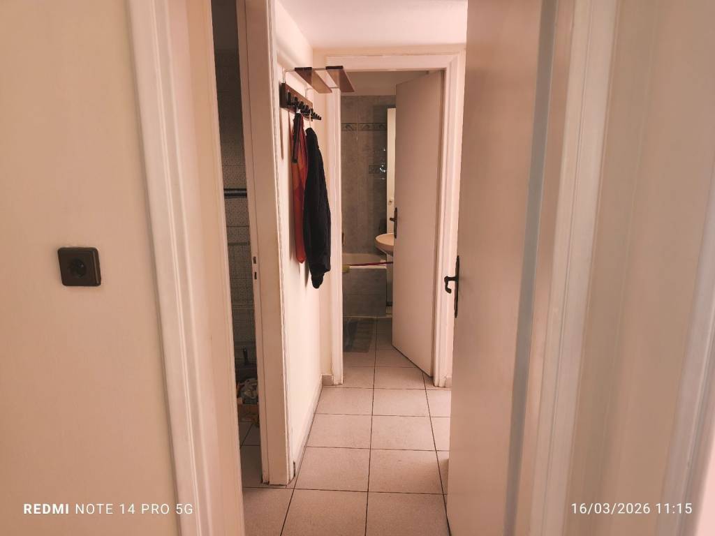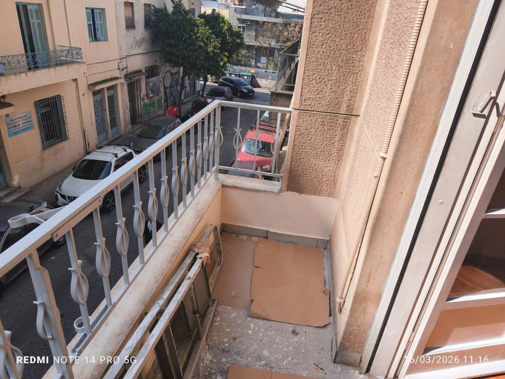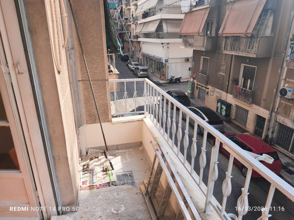 Διαμέρισμα 49 τ.μ. σε καλή κατάσταση, με σαλόνι, χωλ υποδοχής, κουζίνα με αλλαγμένα ντουλάπια που μπορεί να ενωθεί με το χωλ, μπάνιο με αλλαγμένα πλακάκια και ένα υπνοδωμάτιο με μπαλκόνι. Φρεσκοβαμμένο, πλακάκια στο πάτωμα, πόρτα ασφαλείας, κλιματισμός. Ψηλός 1ος όροφος, με νότιο προσανατολισμό, πολύ κοντά (280 μέτρα) στον Ηλεκτρικό - metro του Αγίου Νικολάου. Ιδανικό και επένδυση - εκμετάλλευση.