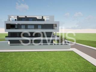 A, N/A 150 sq.m., 2 levels, 1st floor, for investment, at residential area, year of construction 2026, newly built, 3 b/r, living room, 2 bathrooms, kitchen, double-sided, bright, corner, heating n/a, natural gas, air condition, floor heating, with energy class N/A, with aluminum joinery, double glazing, internal staircase, door tv, security door, garden 87 sq.m., storage room, closed garage, price 375.000€, code 6917
