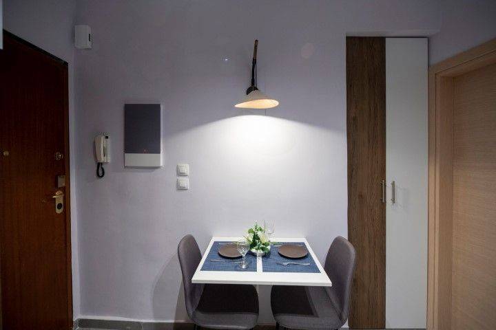 A very cute and modern small apartment, 21 m2, on Poliorkitou str. very close to the Ministry of Macedonia-Thrace and the church of Saint Dimitrios. It is decorated in wonderful blue calming tones and makes the tenant immediately feel at home. It has a comfortable bedroom and a cozy bathroom as well as a fully equipped kitchen. Additional characteristics: easy free of charge public parking with the use of the blue card issued only for city center residents (applicable only for long term rentals), A+++ energy class AC inverter, Wi-Fi access and Smart TV with Netflix infrastructure.