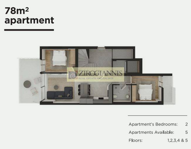 Apartment For sale, floor: 5th, in Ampelokipoi - Pentagon - Elinoroson. The Apartment is 78 sq.m.. It consists of: 2 bedrooms, 1 bathrooms, 1 kitchens, 1 living rooms and it also has 1 parkings (1 Pilotis space). The property was built in 2024. Its heating is Autonomous with Natural gas, Sound insulation, Thermal insulation are also available, it has Alluminum frames with Double glazed windows, the energy certificate is: A++ and its floors are Tiles. The property's status is: Under construction, it is close to Square, Super Market, City Center, it has Openness, Panoramic, Unobstructed view and it has East meridian orientation, Luxury and it also has the following unique features and advantages: Elevator, Storage, Quiet neighborhood. Price: €400.000. Zirogiannis Real Estate (Παλλήνη), contact phone: 2106666690, 6970006617, 2106666678, 6970006616, email: mesitika@zirogianni.gr, zirogianni@gmail.com, website: http://www.zirogianni.gr/