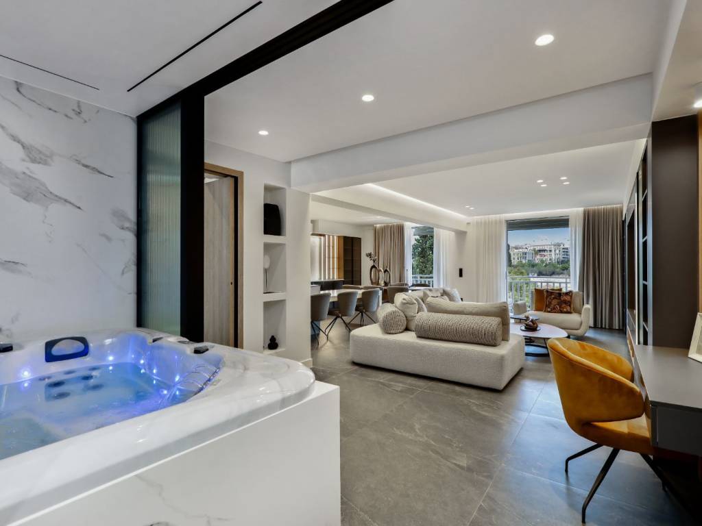 Located in the heart of Athens,this large and stylish apartment offers stunning views of the Temple of Zeus, the Parthenon, and Lycabettus Hill. The interior is spacious and elegantly designed, blending modern luxury with a nod to the city's rich cultural heritage. The living area, allows for a picturesque view of the ancient Parthenon. A well-appointed balcony offers a splendid vantage point to enjoy the city's skyline and the enchanting sight of The Temple of Zeus as the day turns to night.