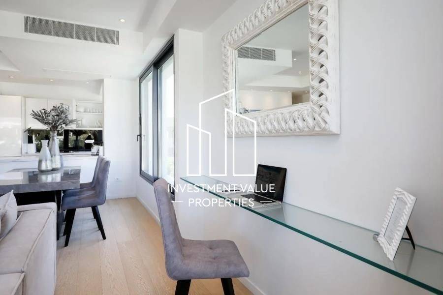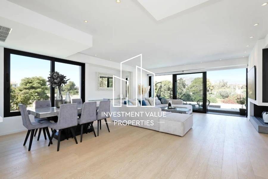Elliniko, Kato Elliniko, Apartment For Sale, 141 sq.m., In Plot 1200 sq.m., Property Status: Amazing, Floor: 1rst, 1 Level(s), 2 Bedrooms (2 Master), 1 Kitchen(s), 2 Bathroom(s), 1 WC, Heating: Personal - Heat Pump, View: Mountain View, Building Year: 2018, Energy Certificate: A, 1 parking(s), Features: Elevator, Security door, Security alarm, CCTV, Storage room, Fireplace, Night stream, Satellite Receiver, Cable TV, Internet Line, Electric Appliances, Double Glazed Windows, Window Screens, Balcony Cover, Balconies, Pets Allowed, For Investment, Luxury, Airy, Roadside, Bright, Underfloor, AirConditioning, Solar water system, Boiler, Grass, Automatic Watering, Trees, Swimming pool, Back yard (Garden), New Construction, Painted, Renovated, Distance from: Airport (m): 33000, Seaside (m): 500, City (m): 13000, Price: 980.000€. INVESTMENT VALUE PROPERTIES, Tel: 2109916965, email: info@ivproperties.gr