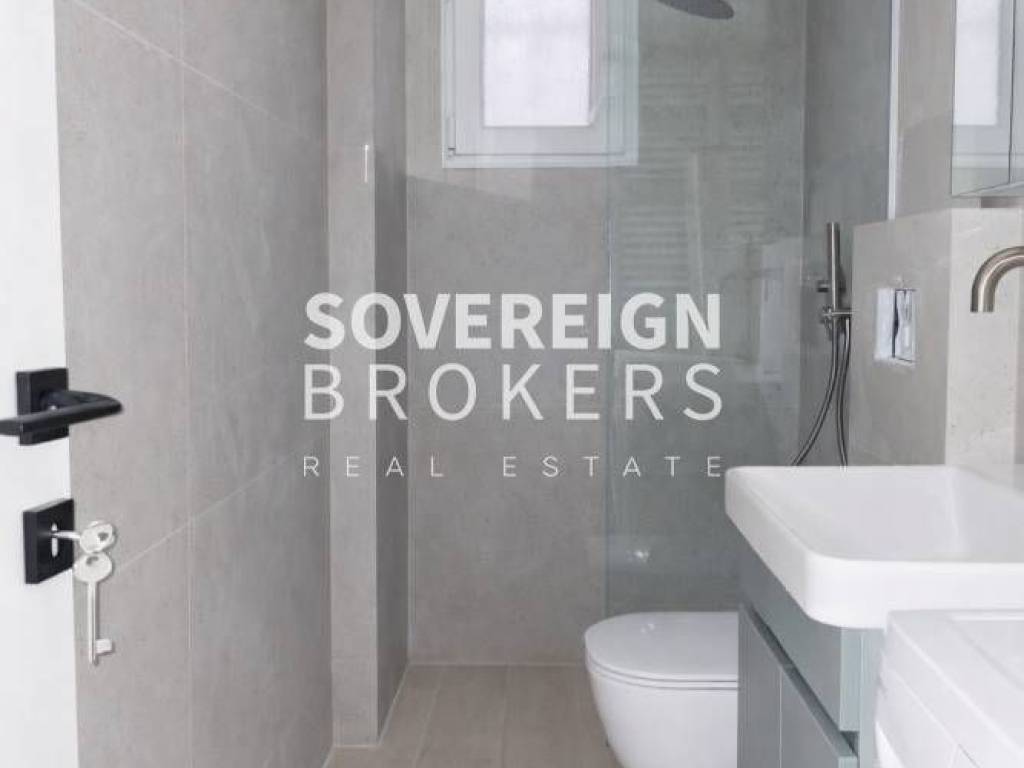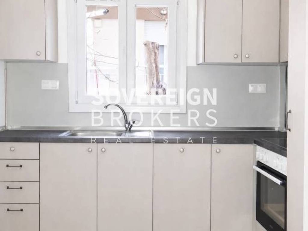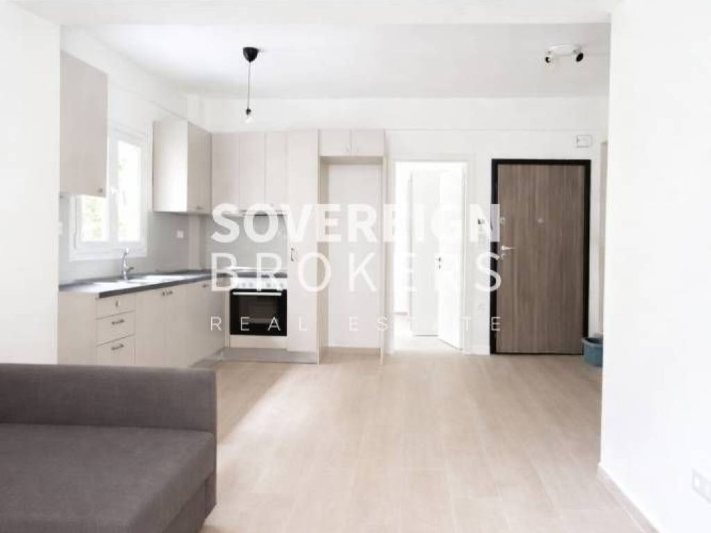 Kalamaria, Center: Fully renovated 45 sq.m. mezzanine studio for rent in Kalamaria, in an excellent location near the pedestrian street and the beach front. It consists of 1 bedroom, living room kitchen and bathroom. It has natural gas individual heating, A/C, synthetic frames with double glazing, armored door and new electrical appliances. Quiet building, with easy access to market and transport. Price €500 Property Code: #41-44032