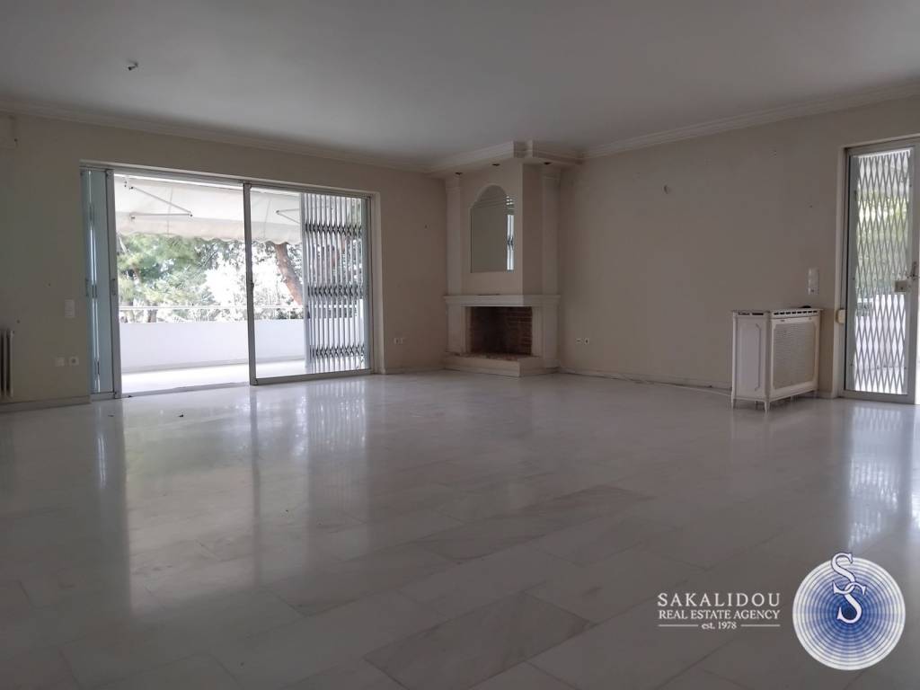 Voula, Pigadakia area, 2nd floor apartment of 155 sq m, great location, with good view and openess, quiet neighborhood, a pleasant and bright frontage apartment, with perimeter verandas, in a building complex with a huge beautiful garden, large outdoor pool, nice environment and in a very nice landscaped neighborhood. The apartment consists of a comfortable reception area with fireplace, 3 bedrooms, 1 Master, a total of 2 bathrooms, 1 WC, kitchen with walk-in pantry, oil autonomy, boiler, verandas, elevator, 1 underground parking space and a large high-ceiling storage room of 11 sq m.