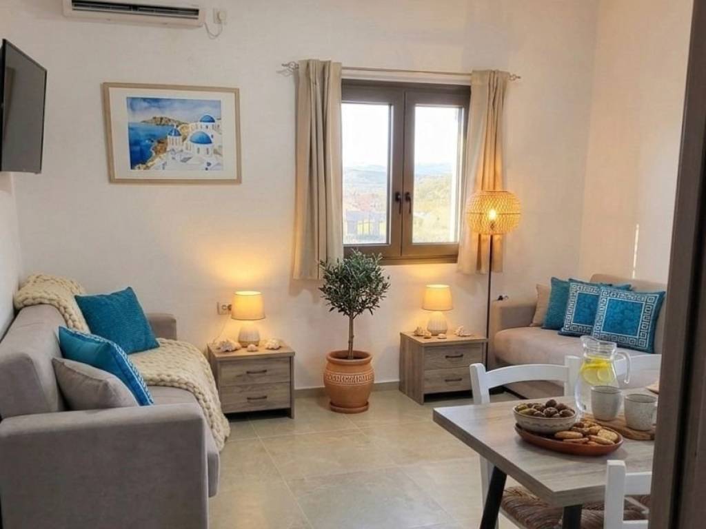 Detached house with two independent apartments — 3 km from Kalamos Beach For sale: A property fully renovated in 2024, ready for immediate move-in or rental investment, with no additional costs or surprises. The property consists of two autonomous apartments with independent entrances and private gardens. Property Features: • Living Area: approx. 80 sq.m. • Plot Size: 1,600 sq.m. — fully fenced, landscaped with traditional Greek stone. • Trees: Productive olive, fig, and pomegranate trees. • Potential: Space for further expansion, a swimming pool, or an additional guest house. Equipment (Included in price): • Full furnishing and electrical appliances. • Solar water heater. • Internet connection. • Air conditioning (A/C) in every apartment. Location: Located in Central Evia, just 140 km from Athens (less than a 2-hour drive via bridge or ferry). An ideal base for exploring the island: the legendary Dragon Houses (Drakospita), the thermal springs of Edipsos, the climbing routes of Mount Dirfis, waterfalls, and dozens of Aegean and Euboean Gulf beaches. Distances & Local Amenities: • Aliveri (12 km): Major town with supermarkets, banks, public services, and a medical center. • Perivolia Village: A quiet and safe village with a local bakery and mini-market. • Nearby Town (1.5 km): Tavernas, cafes, and a pharmacy—all open year-round, not just during the tourist season. • Kalamos Beach: Only 3 km away.