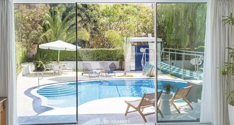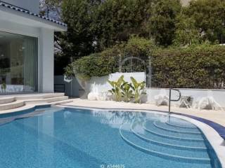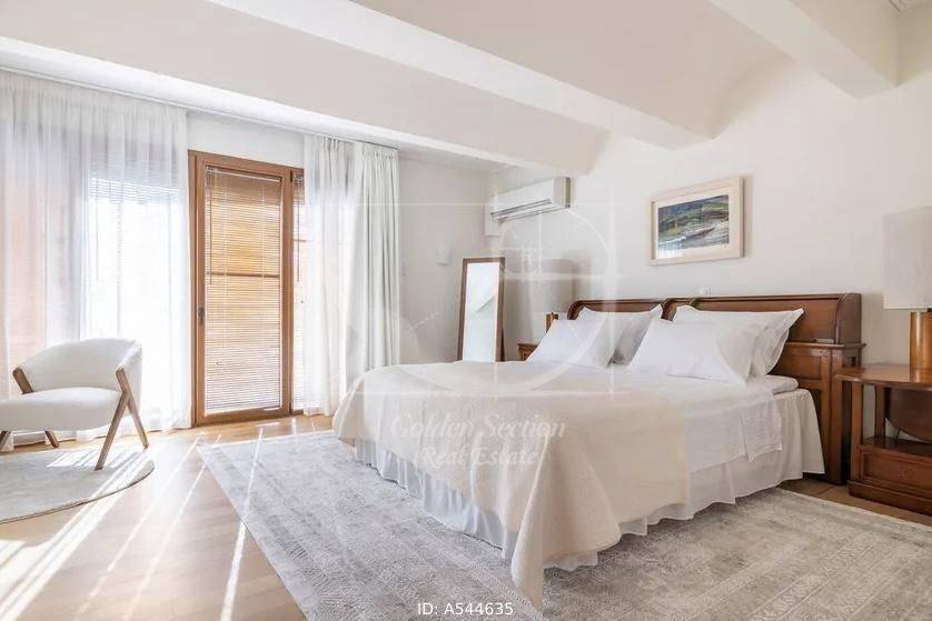 Glyfada - Detached House 650sqm plot 650sqm, fully furnished, bedrooms 7, master bedrooms 2, excellent condition, year built 2000, energy class B, living room, kitchen, 6 bathrooms, heating type: autonomous (oil), air condition, parking, quiet, luminous, frontage, painted, electric roller shutters, storage space, fireplace, balconies, aluminum frames, wood & tile floors, alarm, luxurious, swimming pool, private pool, internal staircase, pets allowed, residential zone, sea front (1st row), access from asphalt, close to sea (up to 200m).