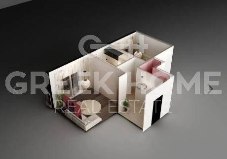 Thessaloniki - Apartment 55sqm plot 200sqm, electrical appliances furnished, bedroom, 1st, fully renovated, energy class B+, living room, hall, kitchen, bathroom, heating type: autonomous (electricity), air condition, quiet, luminous, frontage, painted, balconies, tents, elevator, synthetic frames, double glazed windows, door screen, ceramic tiles floors, secure door, luxurious, southern orientation, investment property (return 0.03%), short term lease.