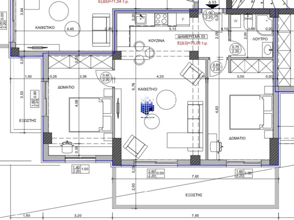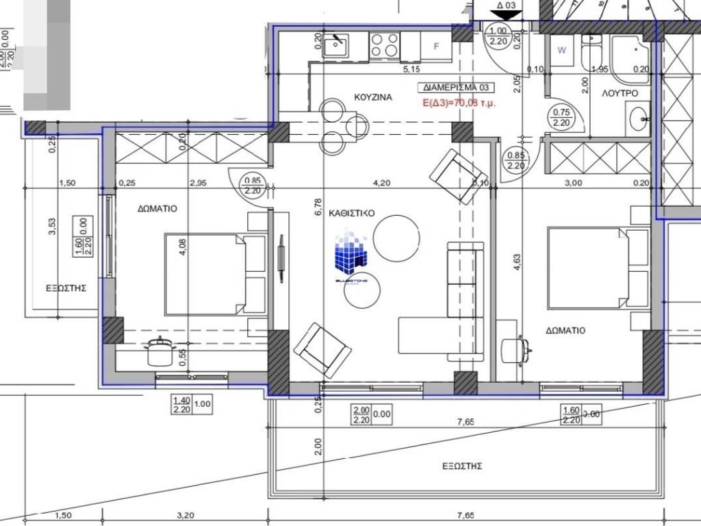 A newly built, front-facing 79-square-meter apartment is available for sale in the Thermi neighborhood of eastern Thessaloniki. This is a particularly sunny apartment located on the first floor of a luxury building. It consists of a spacious living-dining-kitchen area, two bedrooms, one bathroom, and two balconies totaling 20 sq.m. It also features a private storage unit of 27.90 sq.m. in the building’s basement and one parking space in the building’s entrance area. The apartment features a reinforced security door, pre-wiring for an alarm system, high-energy-efficiency synthetic window frames with double glazing, and tile flooring. The property has independent, underfloor heating powered by natural gas, and there is pre-wiring for air conditioning throughout the property. The property is centrally located in Thermi, next to shops and public transportation stops. It is situated near major roads, with direct access to downtown Thessaloniki as well as Chalkidiki. You can visit our website: http://www.bluestonerealty.gr to stay updated on our new properties. *When viewing a property, you must present your ID and Tax Identification Number (AFM) in accordance with Law 4072/2012. *The exact location on the map does not correspond to the actual location of the property.