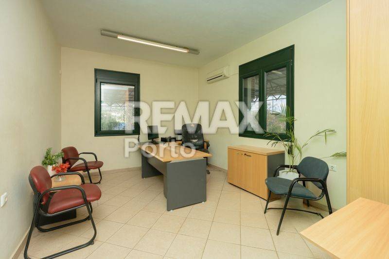 Διαμόρφωση Κτηρίου Το κτήριο αναπτύσσεται σε τρία επίπεδα: Υπόγειο (200 τ.μ.) Αποθηκευτικός χώρος με οργανωμένα ράφια, εγκαταστάσεις ύδρευσης και ηλεκτρολογικό εξοπλισμό Ισόγειο (200 τ.μ.) Γραφεία, βοηθητικοί χώροι και WC 1ος όροφος (70 τ.μ.) Πλήρως λειτουργικό διαμέρισμα με κουζίνα και μπάνιο, ιδανικό για κατοικία ή φιλοξενία προσωπικού, με πρόσβαση σε ευρύχωρη βεράντα και δυνατότητα περαιτέρω δόμησης Επιπλέον Παροχές & Εξοπλισμός Θέρμανση & ψύξη Κουφώματα αλουμινίου με διπλά τζάμια Πόρτες ασφαλείας Δομημένη καλωδίωση Σύστημα συναγερμού & κάμερες ασφαλείας Σύστημα εξαερισμού & ανιχνευτές πυρκαγιάς Άνετοι χώροι στάθμευσης (εντός & εκτός οικοπέδου)