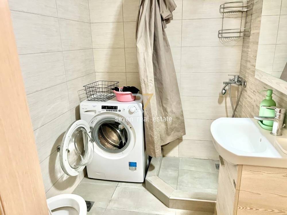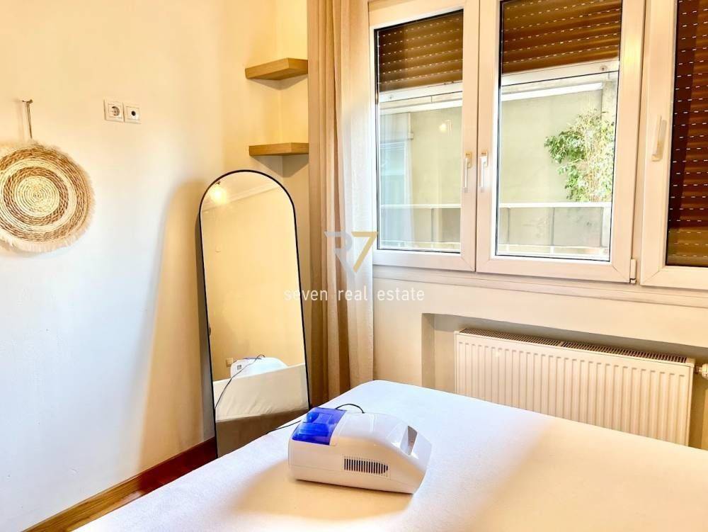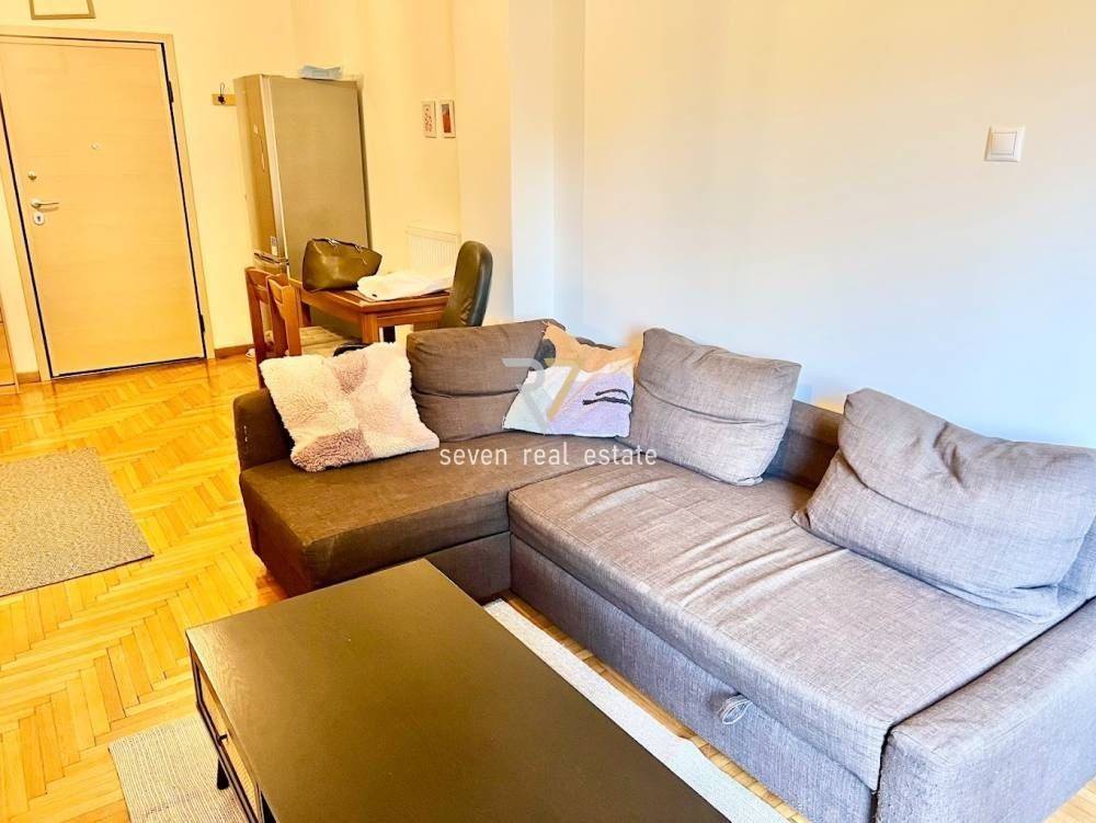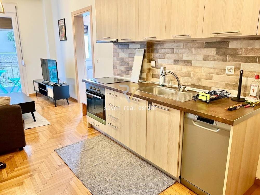 Thessaloniki, Nea Paralia: For rent a fully renovated 50 sq.m. luxury studio, frontage on the 1st floor with elevator and autonomous natural gas heating. It consists of 1 bedroom with built-in wardrobe, living room and kitchen and bathroom. It is fully furnished, equipped with all electrical appliances (oven, stove, refrigerator, dishwasher and clothes washer, vacuum cleaner), painted and has synthetic frames with double glazing, 2 armored doors, air conditioning, wooden floors and an entrance hall with a security closet. It is located in a very central location, next to the beach, with direct access to the market and transportation, ideal for students and workers. Price 600€ | Property Code: #38451