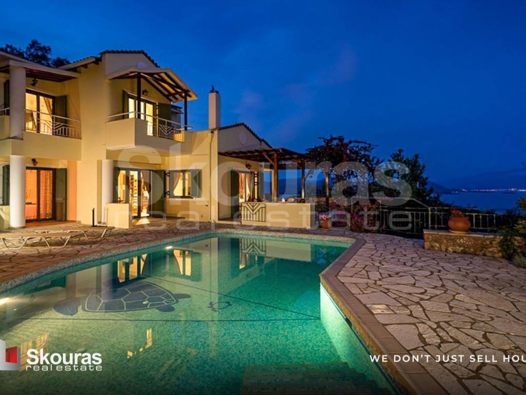 Located just 300 meters from the sea, this 4-bedroom villa of approximately 225 sqm features a private swimming pool, garage, and a self-contained guest suite, set within a quiet olive grove environment on the east coast of Lefkada. Positioned between Perigiali and Nikiana, the property offers open sea views towards nearby islands and the mainland, while Passa Beach is within walking distance and Nikiana and Nidri are only a short drive away. Built in 2007 and arranged over three levels, the villa is designed for both functionality and comfort. The lower ground floor includes an independent guest apartment with private entrance, kitchen/living area, bathroom, and access to the terrace and garden. The ground floor features an open-plan kitchen, living and dining area, one en-suite bedroom, and direct access to the terrace and pool, while the first floor comprises two additional bedrooms, each with its own bathroom. The property is one of two neighbouring villas on a 4,000 sqm plot, with a legally defined co-ownership structure and clearly allocated private-use areas, including outdoor spaces, parking, and access. Additional features include central heating (underfloor in selected areas), air conditioning in bedrooms and the guest apartment, fireplace, granite staircases, and a fully equipped kitchen. Outdoor areas include a covered patio, landscaped terraces, a mosaic-tiled swimming pool of approximately 40 sqm, and a private olive grove. The villa is suitable for both private use and rental activity, including short- and long-term leasing. Skouras Real Estate #1 Greek Real Estate Company in the Peloponnese 6 Offices: Nafplio | Kalamata | Corinth | Porto Heli | Patra | Gialova 3000+ Properties | 18+ Years of Experience | Support in 5 Languages Marketing & Website - European Property Awards 2020 Marketing Techniques & Development - EPPA 2022 & 2024 Call Center: +30 27520 29529 Mobile: +30 6987289736 Email: gor@skourasrealestate.gr Property Manager: Pipilos Anastasios More than 3,000 properties available at: www.skourasrealestate.gr Note: Property information is based on data provided by the owners. Skouras Real Estate bears no responsibility for any inaccuracies. For property visits, presentation of an ID card or passport is required.