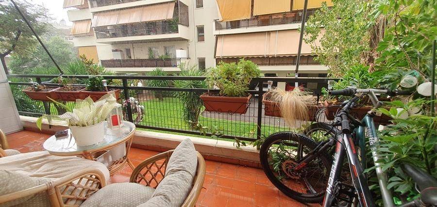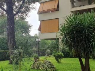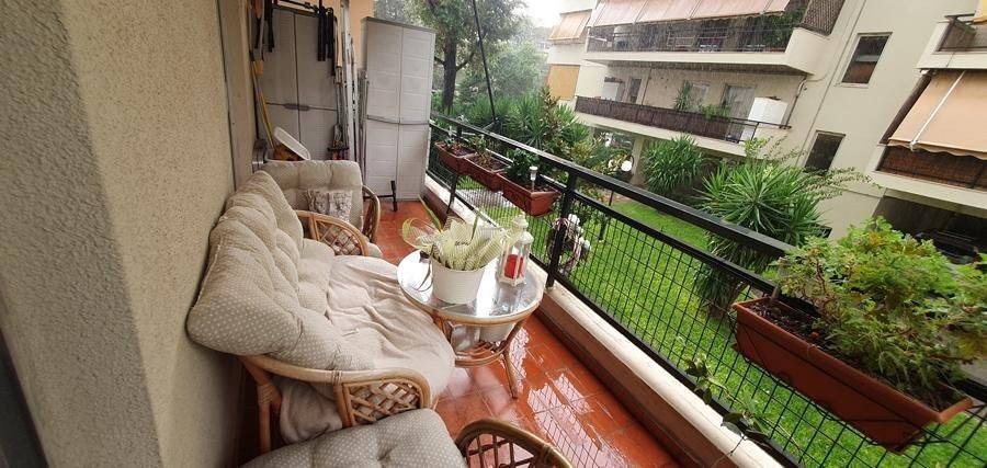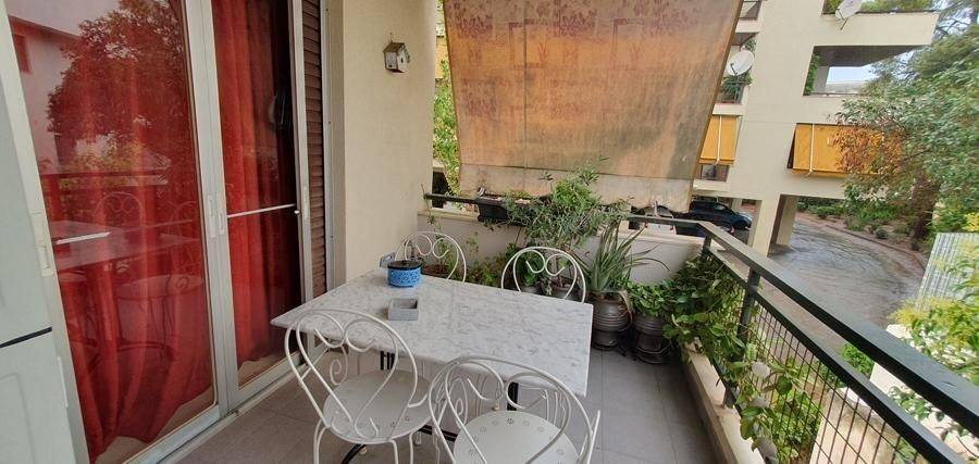 Maroussi - Sismanoglio neighborhood: 82 sq.m., 1st floor, 2-bedroom, beautiful corner apartment, in a well-kept 1980 apartment building of good construction. Built in a spacious plot it is surrounded by a very nice garden, and it is especially quiet. Successful floor plan making excellent use of space. Layout: Single living-dining room space and a separate kitchen opening onto a spacious square veranda overlooking the garden, 2 good-sized bedrooms opening onto a 2nd veranda, 1 bathroom. Ample closets. Features beautiful natural wood floors in the bedrooms and nice marble floors in the rest of the house. Natural gas heating has room-by-room autonomy and is operated regularly.
