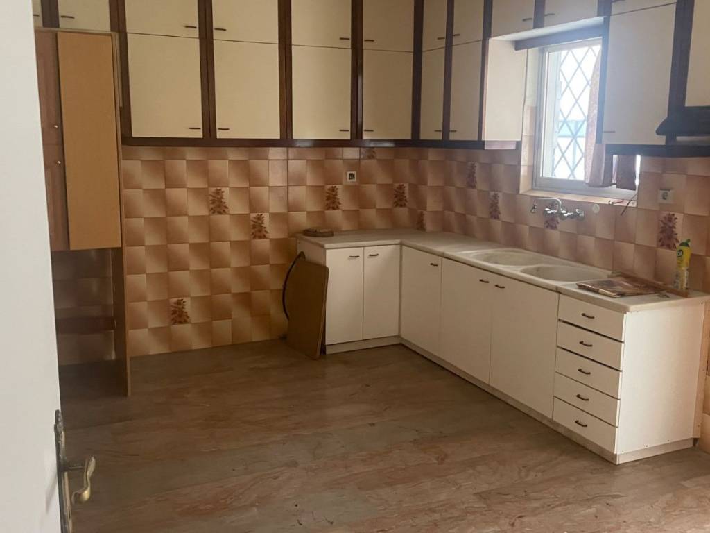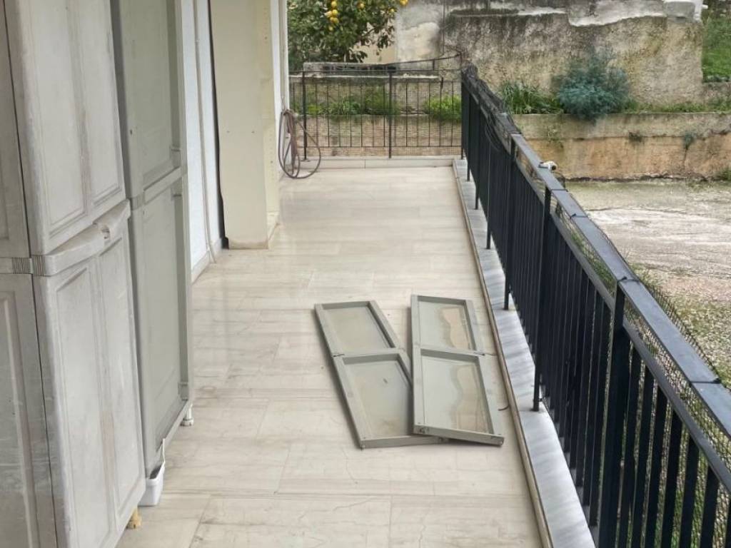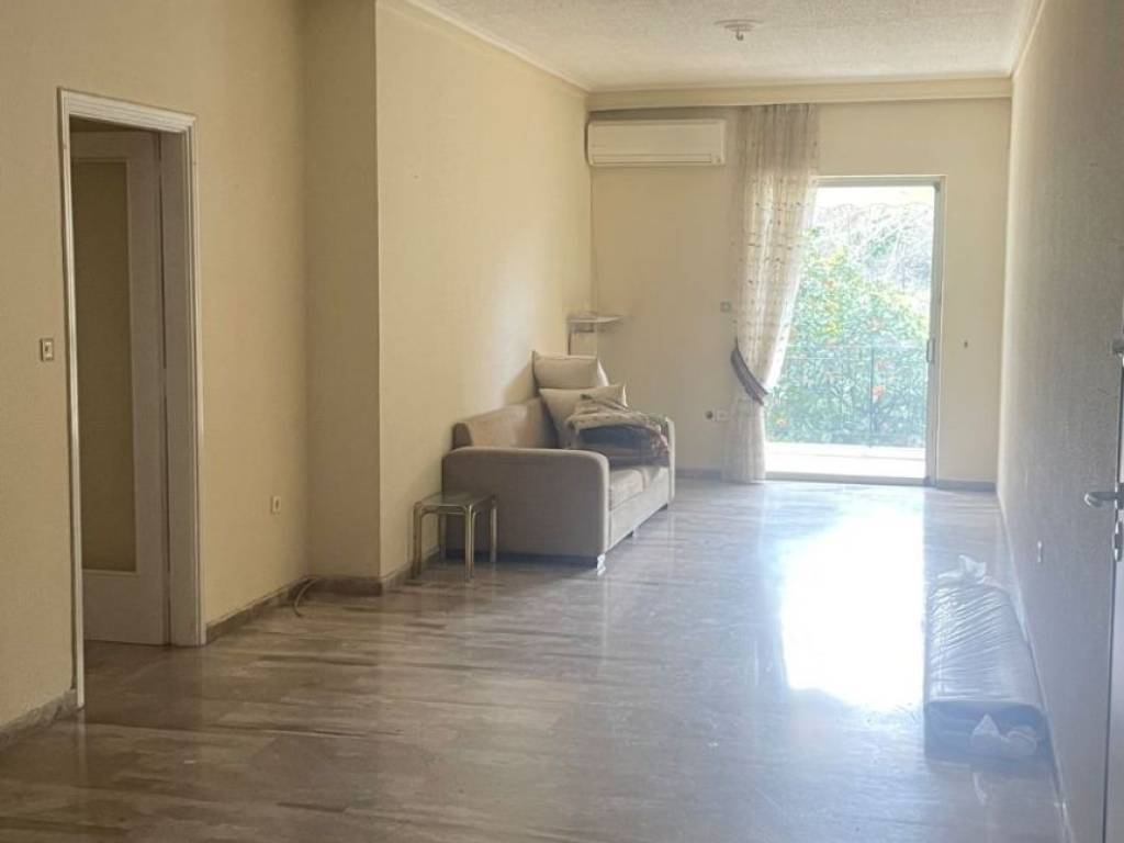 Elevated ground floor apartment, impeccably constructed, featuring wrap-around balconies. It boasts a huge living room and a spacious kitchen with premium marble countertops. The layout includes two bedrooms and a large bathroom. It is quiet, bright, and ideally located near Attiki Odos, the National Road, and the Suburban Railway (Proastiakos). Equipped with oil heating and 3 A/C units.