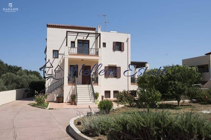 This is a complex of two detached homes totaling 330 square meters on a 1-acre lot in the Neo Oikismos neighborhood of Gallos, Rethymno. The neighborhood is rapidly developing and is located next to the University of Crete. It is governed by building regulations, such as the mandatory use of clay tiles and a height restriction (9 meters) for the residences, while the minimum lot size is 1 acre, which prevents overcrowding. As a result, the settlement maintains a high standard of quality. This property is surrounded by greenery. It was designed to have a traditional appearance while meeting the highest construction standards. The remaining buildable area of the lot is 70 sq. m. MAIN HOUSE The main house is essentially a 190 sq. m. duplex. The bedrooms are located on the ground floor, which is laid out as follows: a) a large bedroom with a balcony featuring a pergola, a walk-in closet, and a large bathroom; b) a second large bedroom with an en suite bathroom, a balcony with a pergola, and a separate entrance. The first floor consists of a large living-dining room, a fairly spacious kitchen with its own smaller dining area, a WC, and a large balcony with a beautiful view. BASEMENT The basement is used as living space and includes a two-bedroom apartment of approximately 65 sq. m. and a studio of approximately 35 sq. m. Each of these homes has its own yard and plenty of natural light, while the natural surroundings in which the property is situated provide a sense of tranquility and comfort. These residences are ideal for investment as they are already leased. STORAGE SPACE The property has 35 sq. m. of storage space. The main storage area is located in a separate section of the semi-basement, accessible via the stairwell. The heating boiler is also located there. The remaining 5 storage areas are located beneath all the exterior staircases of the house. OTHER DETAILS The building’s structural plans include provisions for an elevator, and the elevator shaft has been constructed. The elevator mechanism has not yet been installed. The house has an automatic generator and a water tank. The outdoor area is 700 sq. m. and is filled with fruit trees. It offers the possibility of building a pool, a BBQ area, or anything else one might desire. Transfer Costs :The agents commission from the buyer is 3% + VAT on the purchase price. The issuer of the invoice is G. - Alexandros Papadakis, a licensed real estate agent with GEMI Number 163982258000. Hellene Estate is not responsible for the information provided in this presentation as it is for information only and is subject to omissions, price change or withdrawal without prior notice. Transfer tax, notary and mortgage office fees and possible legal fees are paid by the buyer.