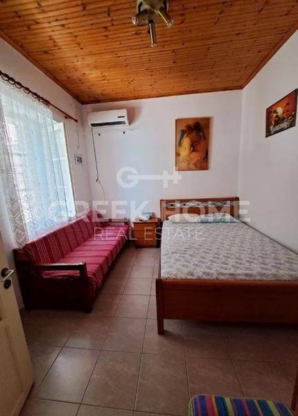 Evrostini, Derveni - Detached House 69sqm plot 275sqm, unfurnished, bedrooms 2, levels 1, ground floor (69sqm), good condition, year built 1955, energy class D, living room, hall, kitchen, bathroom, heating type: no heating (electricity), quiet, luminous, corner, sea view, frontage, painted, balconies, garden, door screen, ceramic tiles floors, separate kitchen, sea front, price is negotiable, investment property, close to sea (up to 50m).