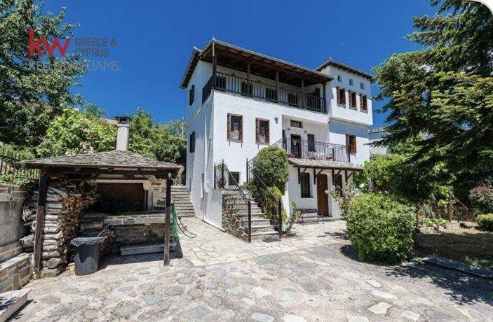 Three stories fully furnished, traditional villa 200 m2, on mount Pelion, Thessaly, Greece, in the serene small village of Katochori, 5mins from famous and cosmopolitan village of Portaria . The villa is at 20mins distance from the town of Volos and the beaches and at half an hour drive from the Agriolefkes ski center. The property boasts of a garden of 600m2 with olives, pear , apple ,cherry trees and the highest ever fir tree of the whole mountain. There is also space for building a swimming pool and playground. The ground floor comprises a totally independent house of one dbl bedroom, kitchen with small dining table for four and a bathroom . It is connected through a staircase inside with the upper floors and its 72 m2 can be used either for hosting guests or be rented separately. Each of the other two floors is equipped with multiple sitting areas and bathrooms. The mezzanine hosts a pretty big fireplace as well as the sitting and dinning rooms and a big kitchen . The upper and third floor has an entry sitting hall and two double bedrooms on each side and boasts a huge hagiati/veranda with a splendid view on the Gulf and the city of Volos. A land plot of 8,8 acres full of olive trees, outside the village, is also offered along with the villa. Price: €550.000. KW Athens Riviera, contact phone: 2103007281, email: kwar@kwgreece.gr, website:
