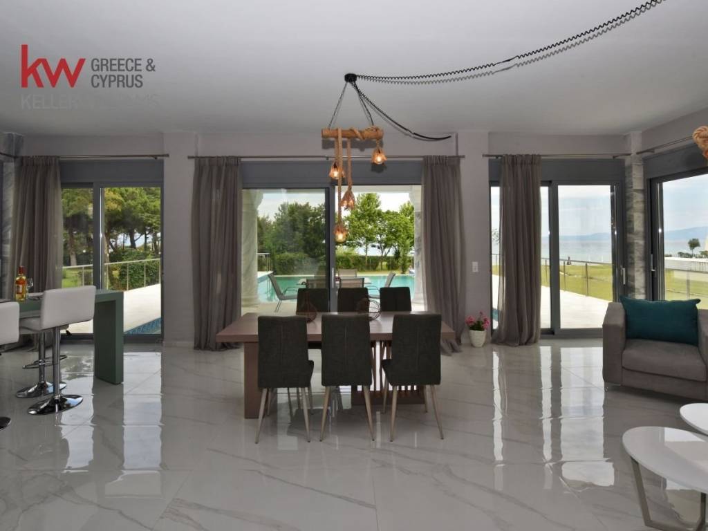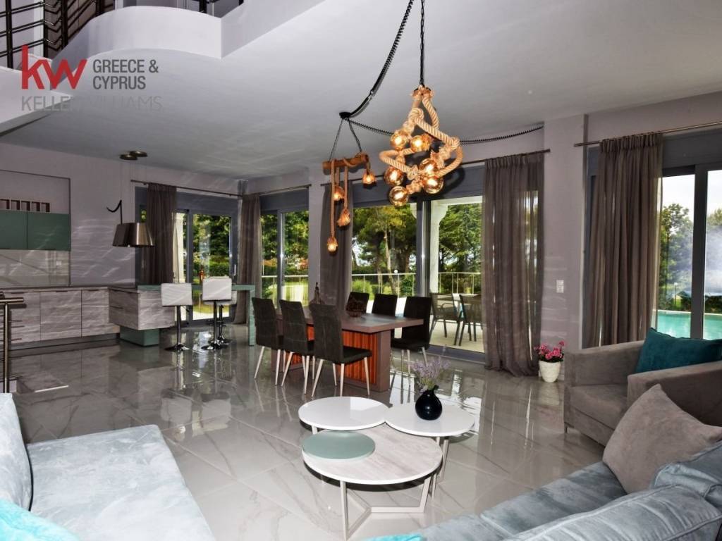 Villa For sale, floor: Basement, Ground floor, 1st (3 Levels), in Pallini. The Villa is 250 sq.m. and it is located on a plot of 1.700 sq.m.. It consists of: 4 bedrooms (3 Master), 5 bathrooms, 1 kitchens, 1 living rooms. The property was built in 2018. Its heating is Personal with Electricity, Underfloor heating are also available, it has Alluminum frames, the energy certificate is: A and its floors are Marble. The property's status is: New development, Excellent condition, it is close to Sea, Seaside, it has Sea view, Luxury and it also has the following unique features and advantages: Window Screens, Electric Appliances, Security door. Price: €2.700.000. KW North, contact phone: 2310588411, 2310588408, email: kwnorth@kwgreece.gr, website: