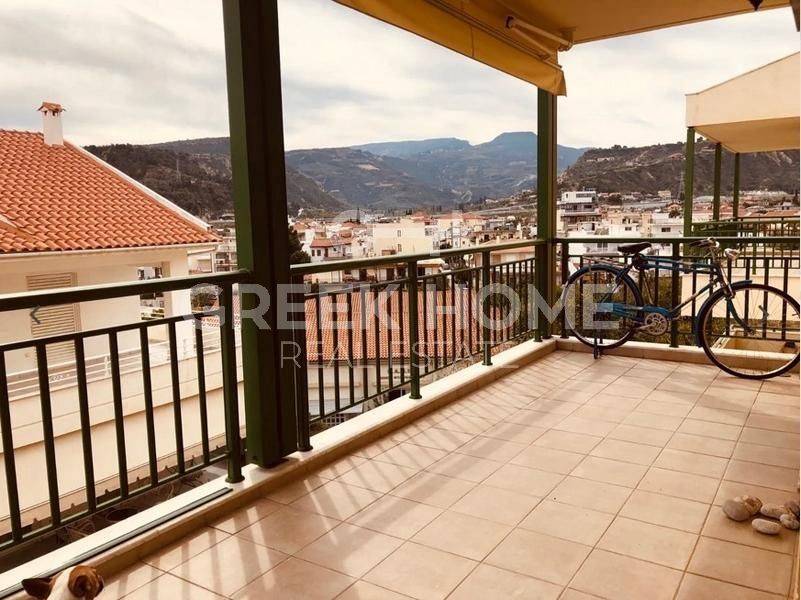 Xylokastro, Centre - Apartment 125sqm fully furnished, bedrooms 2, 5th, penthouse, excellent condition, year built 2007, energy class B+, living room, kitchen, 2 bathrooms, heating type: autonomous (oil), air condition, parking, quiet, dual aspect apartment, luminous, sea view, frontage, storage space, balconies, tents, elevator, aluminum frames, double glazed windows, door screen, ceramic tiles floors, office, secure door, swimming pool, pets allowed, sea front, western orientation, investment property, close to sea (up to 100m).
