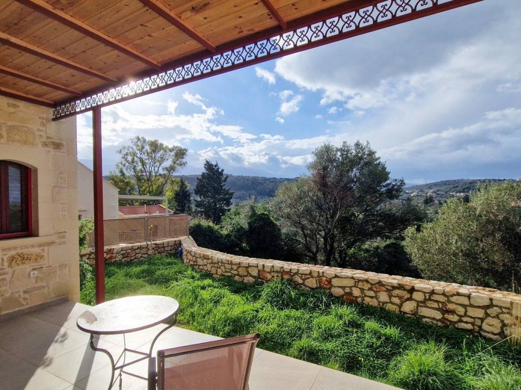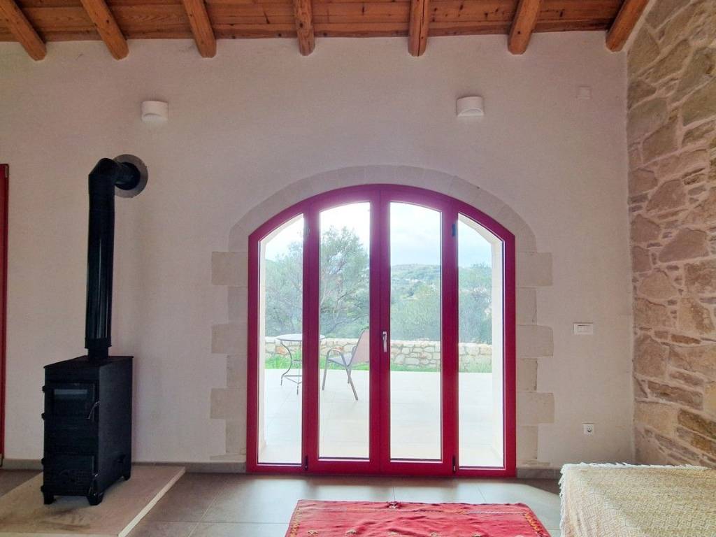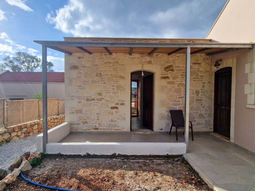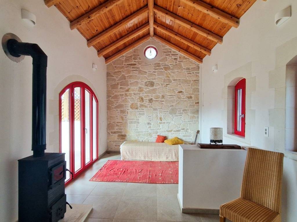 Located in a quiet tranquil area, within walking distance to amenities sits this charming stone residence. With lovely high wood beamed ceilings and a modern layout, this home is perfect, with all the comforts and conveniences one looks for in a permanent home. Ideal for anyone looking for a home which is easy to maintain, or even a lock-up and go holiday home! The main entrance opens into an open kitchen and living area. The area is light and airy with high wood beamed ceilings and stone features on the walls. A wood burner sits in the living room, allowing for extra warmth on cold winter days. Patio doors open out onto a covered terrace with unobstructed views and an enclosed garden. The kitchen has wood cabinets and electrical appliances. To the left of the kitchen is a double bedroom and the main bathroom. The bedroom has fitted wardrobes and direct access to a covered terrace. The second bedroom and bathroom have their own private access making it an independent guest studio allowing for privacy. It also has access to a covered terrace and back garden. The home will be sold unfurnished. Vamos is a lively town offering year-round amenities, a 24-hour health centre with ambulance service, a bank, a pharmacy, Doctors, Dentist, butcher, baker, patisserie, a notary office, super/mini markets, restaurants/tavernas & coffee shops and a primary & High School. Interesting Cultural events & art/craft exhibitions are organised at various times during the year. The seaside towns of Kalives and Almyrida are about 10 & 15-minutes’ drive away respectively. Kalives town offers two sandy beaches -East & West of the town, laced with summer tavernas & cafes, 2 pharmacies, supermarkets, 3 bakeries, Patisseries, 4 butcheries, hair & beauty salons, 2 barber shops, restaurants/tavernas, coffee shops, English-speaking doctors, Cardiologist, a gynaecologist, a dentist, hair/beauty salon, a gym, pre-primary & Primary schools, clothing shops, 2 gas stations, Auto repair shops, Bicycle shop with repair service, Vet with Pet shop, an English market with UK products, English-speaking lawyer, Micro-Biology Centre, Radiology for X-rays, and all further amenities as well as a KEP (English-speaking Community Centre) BENEFITS: Air Conditioning Ceiling Fans Central Heating (Underfloor Heating) Solar Panel Aluminium Windows & Doors with Double Glazing Wood Burner Insect Screens Fitted Wardrobes Wood Beamed Ceilings Tiled Floors All electrical Appliances Garden Courtyard Covered Terrace Easy Wheelchair Access Private Parking Perimeter Boundary Within Village Boundaries Quiet Area White Mountain & Rural Views Unobstructed Views Within Walking Distance to Village Square Within Walking Distance to Amenities Short Drive to the Beach