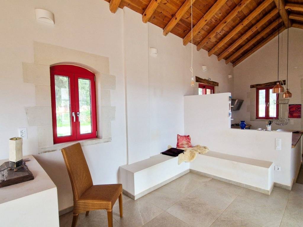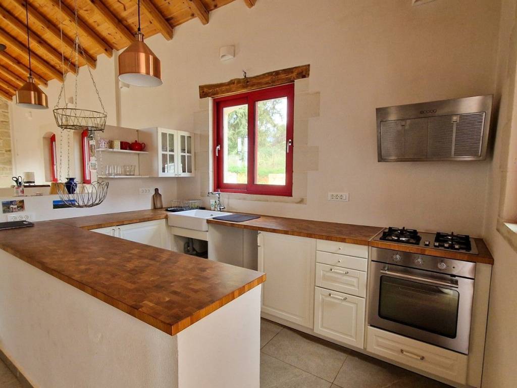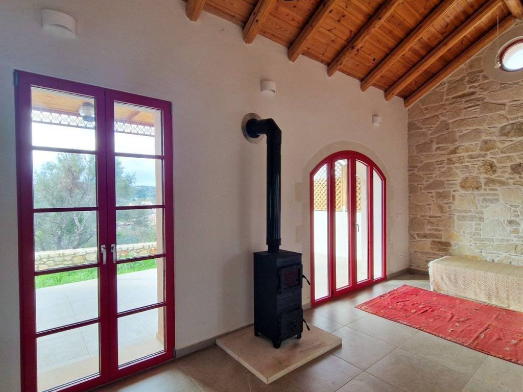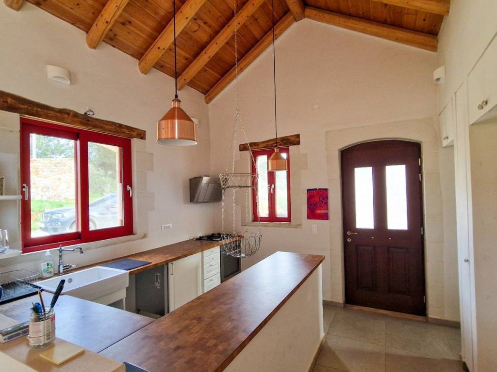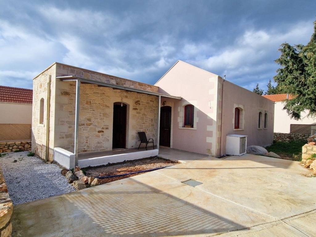 Located in a quiet tranquil area, within walking distance to amenities sits this charming stone residence. With lovely high wood beamed ceilings and a modern layout, this home is perfect, with all the comforts and conveniences one looks for in a permanent home. Ideal for anyone looking for a home which is easy to maintain, or even a lock-up and go holiday home! The main entrance opens into an open kitchen and living area. The area is light and airy with high wood beamed ceilings and stone features on the walls. A wood burner sits in the living room, allowing for extra warmth on cold winter days. Patio doors open out onto a covered terrace with unobstructed views and an enclosed garden. The kitchen has wood cabinets and electrical appliances. To the left of the kitchen is a double bedroom and the main bathroom. The bedroom has fitted wardrobes and direct access to a covered terrace. The second bedroom and bathroom have their own private access making it an independent guest studio allowing for privacy. It also has access to a covered terrace and back garden. The home will be sold unfurnished. Vamos is a lively town offering year-round amenities, a 24-hour health centre with ambulance service, a bank, a pharmacy, Doctors, Dentist, butcher, baker, patisserie, a notary office, super/mini markets, restaurants/tavernas & coffee shops and a primary & High School. Interesting Cultural events & art/craft exhibitions are organised at various times during the year. The seaside towns of Kalives and Almyrida are about 10 & 15-minutes’ drive away respectively. Kalives town offers two sandy beaches -East & West of the town, laced with summer tavernas & cafes, 2 pharmacies, supermarkets, 3 bakeries, Patisseries, 4 butcheries, hair & beauty salons, 2 barber shops, restaurants/tavernas, coffee shops, English-speaking doctors, Cardiologist, a gynaecologist, a dentist, hair/beauty salon, a gym, pre-primary & Primary schools, clothing shops, 2 gas stations, Auto repair shops, Bicycle shop with repair service, Vet with Pet shop, an English market with UK products, English-speaking lawyer, Micro-Biology Centre, Radiology for X-rays, and all further amenities as well as a KEP (English-speaking Community Centre) BENEFITS: Air Conditioning Ceiling Fans Central Heating (Underfloor Heating) Solar Panel Aluminium Windows & Doors with Double Glazing Wood Burner Insect Screens Fitted Wardrobes Wood Beamed Ceilings Tiled Floors All electrical Appliances Garden Courtyard Covered Terrace Easy Wheelchair Access Private Parking Perimeter Boundary Within Village Boundaries Quiet Area White Mountain & Rural Views Unobstructed Views Within Walking Distance to Village Square Within Walking Distance to Amenities Short Drive to the Beach