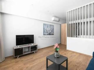 With excellent layout, luxuriously renovated studio with materials of high standards and unique aesthetics, it is centrally located near Antigonidon Square and Egnatia Avenue, with public transport and Metro throughout the city, a plenty of shops and restaurants.