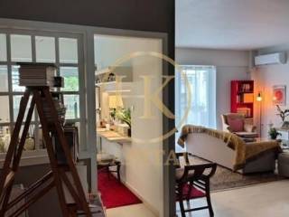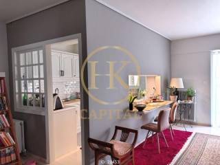 Ampelokipi (Attica - Athens Centre) - Apartment 97sqm electrical appliances furnished, bedrooms 2, levels 1, 2nd, fully renovated, year built 1991, renovation year 2025, energy class C, living room, kitchen, bathroom, wc, heating type: autonomous (oil), air condition, a/c type splits, parking covered, quiet, dual aspect apartment, luminous, unobstructed view view, frontage, painted, large balconies, tents, elevator, built in appliances, aluminum frames, double glazed windows, wood & marble floors, separate kitchen, night electricity discount rate, secure door, pets allowed, within city plan, residential zone, west-southern orientation, access from asphalt, commercial use, close to market (up to 100m).