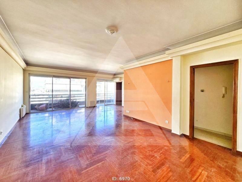 Paleo Faliro, Flisvos - Apartment 123sqm bedrooms 3, levels 1, 6th, good condition, year built 1980, energy class E, living room, kitchen, bathroom, heating type: autonomous (oil), air condition, parking ground floor, quiet, dual aspect apartment, luminous, unobstructed view, frontage, electric roller shutters, storage space 4sqm, balconies, large balconies, elevator, aluminum frames, wood floors, handicap ramp, night electricity discount rate, video doorbell, residential zone, south-western orientation, access from asphalt, close to market (up to 200m), close to tram station (up to 200m), close to school (up to 100m), close to sea (up to 200m), close to bus stop (up to 200m).