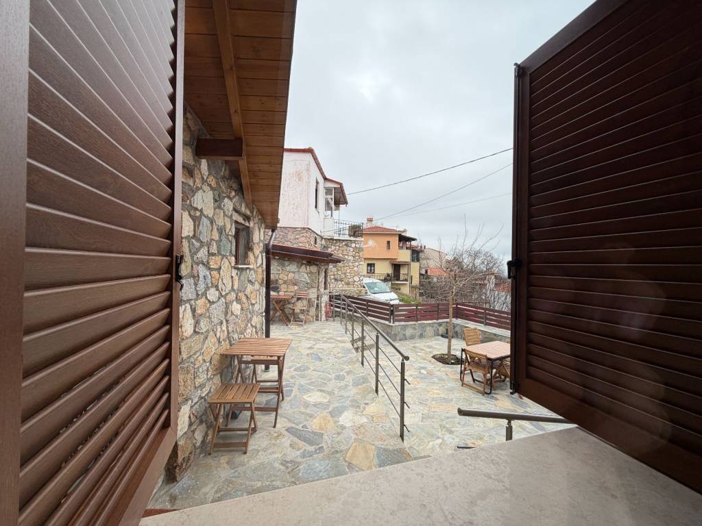 In the heart of Hortiatis, where the exceptional mountain climate meets serene nature, stands a fully independent and radically renovated (2026) 85 sq.m. detached house, set within a 220 sq.m. private plot. A true "gem" of a home, designed with natural wood and stone elements for buyers with high standards, delivered fully turn-key. THE ULTIMATE ADVANTAGE: TECHNOLOGICAL & ENERGY SUPERIORITY The property’s technical specifications are at a "Smart Eco-Home" level, guaranteeing massive utility savings: Premium Heating/Cooling: Features Underfloor Heating powered by a state-of-the-art Heat Pump, supported by an individual Natural Gas boiler and an atmospheric stove. Total Insulation: The tiled roof features heavy-duty insulation (14cm rock wool), combined with new synthetic frames and double energy-efficient glazing. The house acts as a thermal shield in winter and a cool oasis in summer. Smart Security: Comprehensive CCTV surveillance system and an armored security door. THE TURN-KEY EXPERIENCE (Just bring your suitcases): The elevated ground-floor space is designed with premium aesthetics and is delivered Fully Furnished and Equipped: Living Area: A bright living room with unobstructed views from the veranda and a modern open-plan kitchen. Bedrooms: Two (2) exceptionally comfortable bedrooms. Premium Appliances: Includes brand-new electrical appliances (Refrigerator, Stove, Washing Machine) and additional Air Conditioning (A/C). EXTERIOR & LIFESTYLE: The 220 sq.m. plot offers total freedom and privacy: Private Garden & BBQ: Your personal space for relaxation and weekend hosting. Parking & Storage: Exclusive parking space and ample storage room. Inclusive Design: The residence is fully accessible for people with disabilities (PWD/AMEA), featuring a specially designed ramp alongside the main entrance steps. STRATEGIC LOCATION: Located in the center of Hortiatis, everything is within walking distance, while you are only a 20-25 minute drive from Thessaloniki City Center (12 km) and the Airport. SALE PRICE: €220,000 (A rare Value-for-Money proposal, considering the high cost of underfloor heating, the heat pump, and the full furnishing already included). Contact us today for an exclusive tour of this unique property! Phone: +30 6983676196 Email: b.marantidou@gmail.com