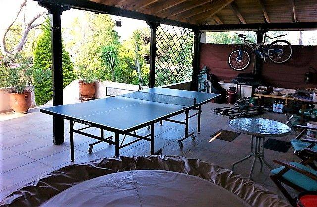 A beautiful (Dream house), a great structure of high quality and technical specifications build before around fifteen years. It is located in a lightly populated, very quite and green area named Pousi Meintani which is characterized as the most beautiful suburb of Loutraki area! It has a very easy access from the main road (Geranion Avenue) just before entering the city, you turn right on a big straight road and you are there in 4 minutes, a distance of about three km which also means that you get to the beach in 5 minutes by car. There are two entries in the land and in the house, at front and at the back facing the amazing mountain of Gerania! There are green plants and trees all around with tile paths, four tabs with hoses for easy watering the garden plus an automatic watering system. All the area is supported from a private water system with very clean water, high pressure and very low price. At the one side there is a small storage room plus two more brown metal storage rooms which are portable as you can see at the pictures the total of around 20 square meters capacity. There is a great size patio about fifty square meters with wooden roof and see through tends on both sides with extra blinders for more privacy and sun protection. It has full fire protection systems even remotely through a cell phone plus which can activate many sprinklers around the house plus a great clean up and cut of the very few trees around the house that gives safety and luck of fire transfer chance to the house. At the patio there is a new jacuzi system, a new ping pong table, a new hockey table, a barbeque and some exercise equipment. Internally there is a big living room with a kitchen on the right side as we enter, three bedrooms with the two of them facing the Gerania mountains and the other east with the sunrise. One of the bedrooms is master with its own bathroom and shower. There is a hallway with access from the living room to the main bathroom and the two bedrooms. There is full air conditioning in all rooms with new inverter units plus a prelocated system for main heating plus a pellet heating system and a brand new solar water heater which works amazing. I use the great fire place at the living room with an extra new pellet heating system which has an air vent that spreads the heat at the hole house. There are three alarm systems, one great system with three sirens, two outdoor and one indoor plus a full eight cameras system that allows you to see everything around the house through a thirty two inches monitor tv plus two more with connections to my phone and optical vision. Also there are four lights at the four sides of the house with a timetable plus one big light on the front street and one at the rear from the public system which all together provide a great safety for the house with lights everywhere!!! The hole structure is in a great and fairly new condition with aluminum double windows and window screens from one of the best company's Alumil and practically it needs nothing to move and live in. It comes absolutely fully furnished and electrically equipped even a dish washer and an amazing home cinema. The house has all the legal papers since i bought it on October of 2020 and it can be immediately transferred at the same notary office that i bought it where is the full file of documents of the house. . Also the pictures are couple of years old and in between i have proceed in cutting all branches and trees all around the house so now it is very safe in case of fire. I am only selling it for heavy health problems and please contact with only serious proposals plus you have to see the property and the area from close so you can appreciate and evaluate it your self first. Also i can send you extra photos or a video that i can create for your needs to see and due to my serious health condition when you come for a visit only one person at a time will enter the house. Real Estate agents are welcome but only if they have a serious buyer to see the house, thank you.