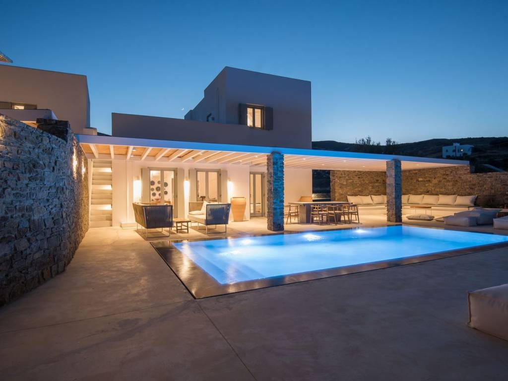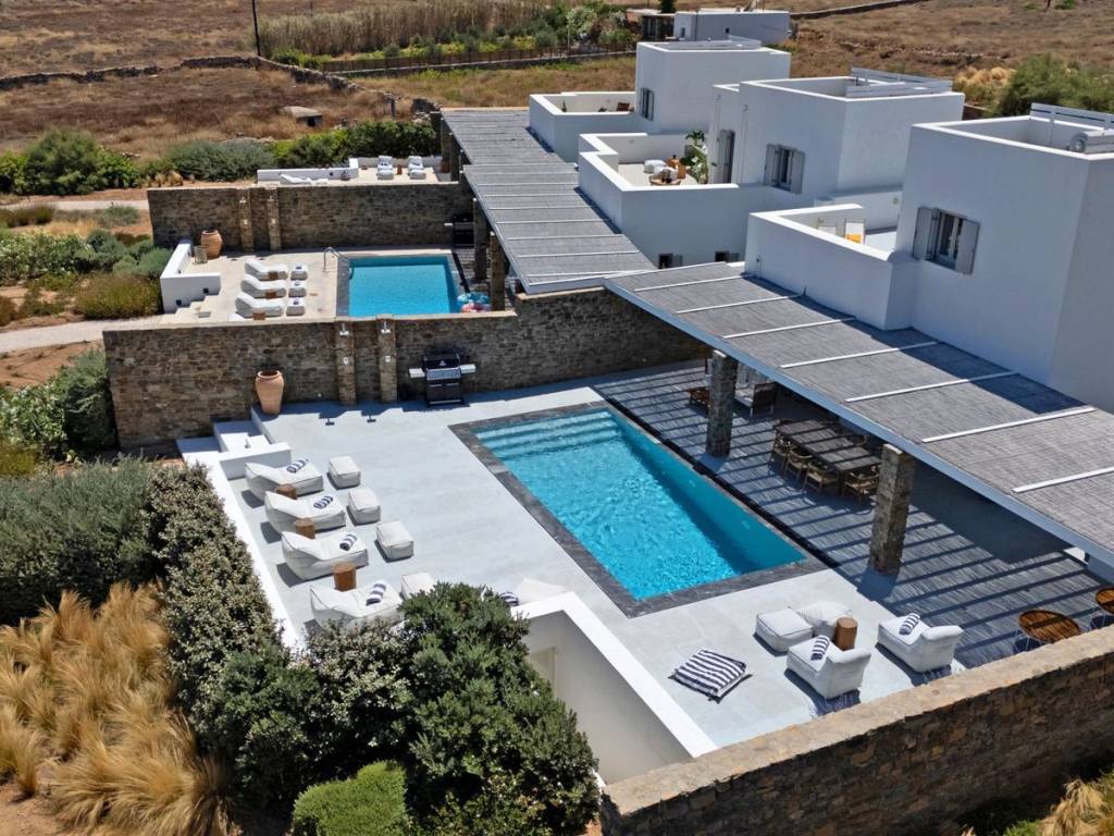 Ideally located within walking distance of Antiparos town, this five-bedroom villa offers a rare balance of convenience, privacy, and relaxed island living in Antiparos. Completed in 2022 as part of a well-maintained residential complex, the property is developed over three levels and comprises approximately 175 sq. m. of main and auxiliary spaces, set on a plot of approximately 1,300 sq. m. The villa features a practical and well-designed layout, with comfortable interior spaces complemented by auxiliary areas that enhance functionality. The outdoor areas are thoughtfully arranged, including a landscaped garden, a private swimming pool, and both indoor and outdoor dining areas, allowing for seamless living and entertaining throughout the day. The residence benefits from its position within an organised, well-kept complex, while its proximity to Chora ensures easy access to restaurants, shops, and local amenities without compromising on privacy and tranquility. An appealing choice both as a private holiday home and as an investment property, thanks to its location, layout, and the consistent demand for quality accommodation in Antiparos. Location: Antiparos is located in the Aegean, belonging to the Cyclades complex. Unique Features: Antiparos is the ultimate destination for holidays filled with relaxation and rest. The island is renowned for its abundance of beaches with clean and crystal-clear waters, as well as many points of natural beauty that surprise all its visitors. Accessibility: To reach the island of Antiparos, one must first go to the port of Parikia in Paros, from where boats depart for Antiparos, with the journey taking about 30 minutes. Investment Potential: Buying property in Antiparos is a tremendous investment as the island has seen significant growth in recent years, attracting more and more investors.