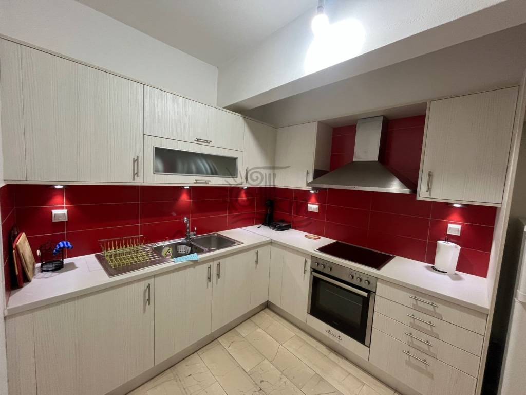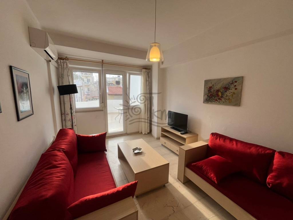 Heraklion, Agia Triada. For rent, a fully furnished first floor apartment of 90 sq m with a very beautiful design. Specifically, it offers an open plan space with a living room, dining room and fully equipped kitchen, two bedrooms with large wardrobes and a bathroom. In addition, it has autonomous heating with three air conditioners, a large storage room of 20 sq m, a washing machine and terrace furniture. Available from March 1.