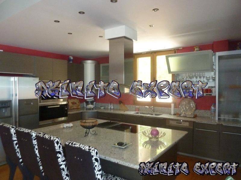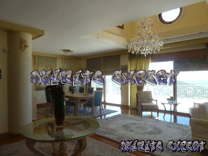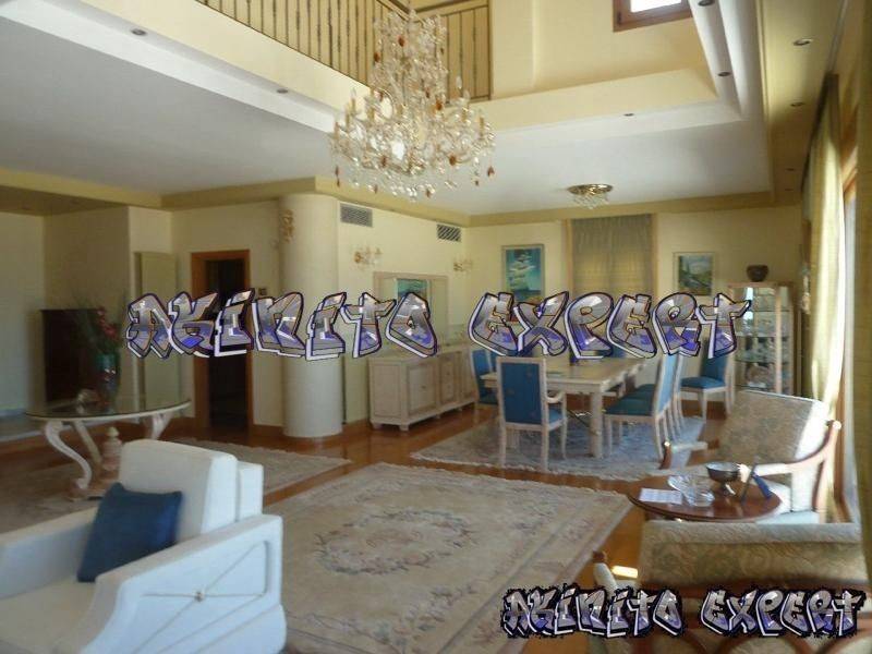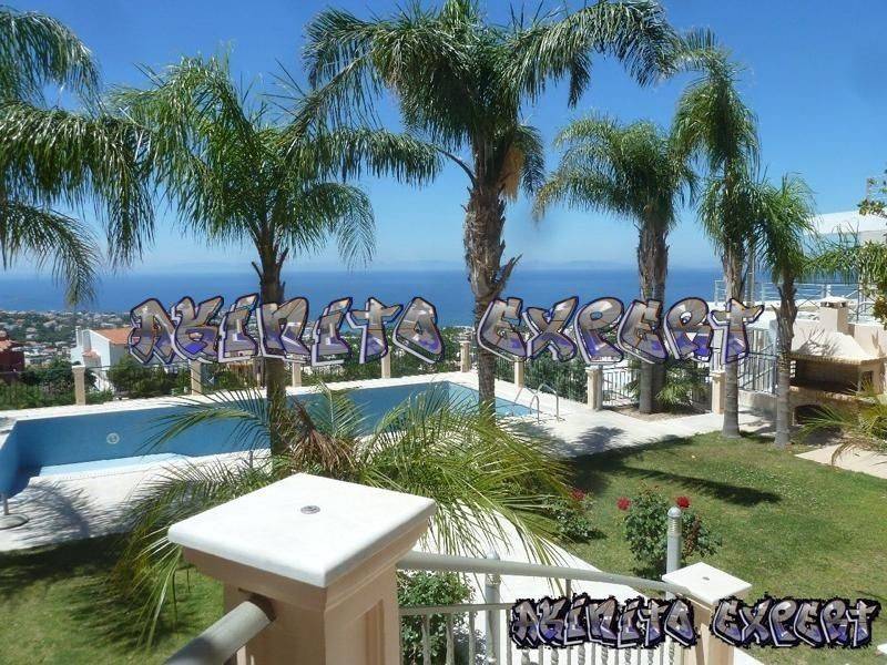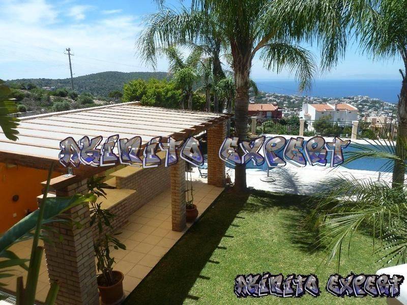 Saronida - Villa 500sqm plot 1300sqm, fully furnished, bedrooms 6, master bedrooms 3, levels 5, ground floor - upper floor - 1st - 2nd - 3rd, newly built, year built 2004, energy class B, 2 living rooms, hall, 2 kitchens, 7 bathrooms, heating type: autonomous, air condition, parking, quiet, dual aspect apartment, luminous, sea view, frontage, painted, electric roller shutters, storage space, solar heater, fireplace, balconies, large balconies, tents, elevator, garden, garden 1000sqm, built in appliances, aluminum frames, double glazed windows, door screen, wood & marble floors, separate kitchen, office, three phase electricity, secure door, alarm, surveillance cameras, video doorbell, luxurious, swimming pool, private pool, internal staircase, barbeque, jacuzzi, playroom, cloakroom, guest house, service room, satellite, internet, internal elevator, laundry room, within city plan, residential zone, southern orientation, access from asphalt.