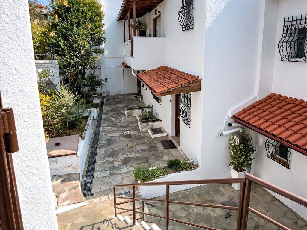 A three-level maisonette. The semi-basement, which functions as a ground floor from the garden side, includes one bedroom, an open-plan living room with kitchen, and a bathroom. It can be fully independent from the rest of the house and has autonomous heating. Alternatively, it can connect to the two upper floors via an elevator. The ground floor features a spacious living room with a fireplace and a beautiful view of the Thermaic Gulf, a separate kitchen, and a WC. There is also a circular metal staircase and an elevator leading to the upper floor. The top floor consists of three large bedrooms, a storage room, and a spacious bathroom, all offering a unique view of the Thermaic Gulf. The maisonette is part of a residential complex with a shared garden. It combines tranquility and nature while being very close to the center of Panorama Thessaloniki, which offers a well-organized market, large supermarkets, and excellent dining options. Parking is available on the street, and you can always find a spot right in front of the house entrance.
