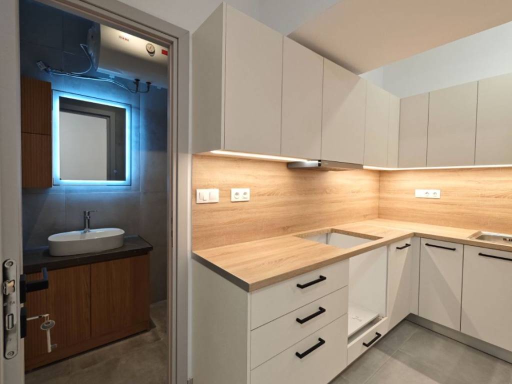 Ισόγειο διαμέρισμα μίας όψης μπροστά στη θάλασσα. Δύο δωμάτια εσωτερικά με εσωτερικά παράθυρα, 1 με δυνατότητα διπλού κρεβατιού και 1 με δυνατότητα μονού κρεβατιού ή κουκετας. 2 νέες ντουλάπες, νέα κουζίνα. Θέση ψυγείου 60εκ. Ανακαινισμένο μπάνιο με νέα υδραυλικά και έπιπλα. Θερμοσίφωνας 80lt. Κλιματισμός Toyotomi 24000btu Inverter. Θερμοπομποι σε δωμάτια και μπάνιο. Ηλεκτρική τέντα. Αυλή 4*3,6 μ.