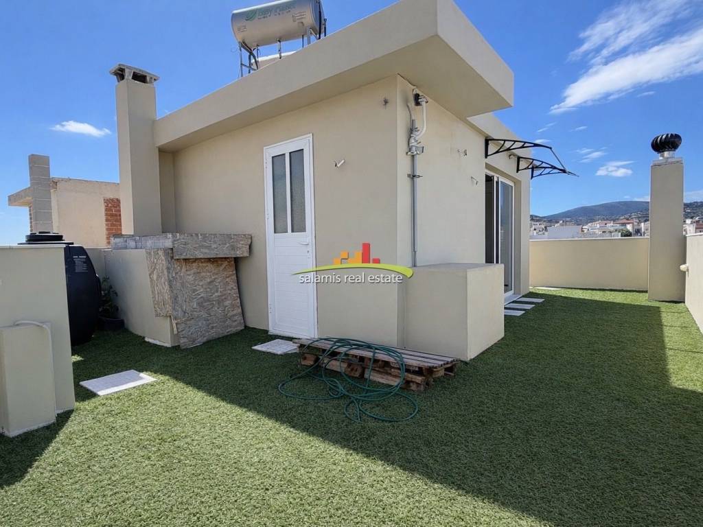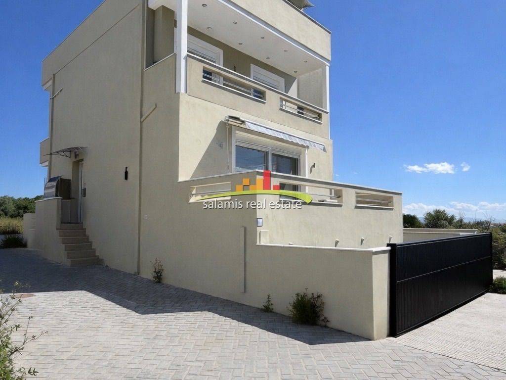 Maisonette of 180 sq.m., built in 2021, located in an excellent area of Salamina, on the borders of Ambelakia and Kamatero, in a highly privileged location, right next to the Junior High School and High School and within immediate access to the entire Ambelakia market. In addition, the port with the ferry boats is only 2-3 minutes away by car, offering quick and easy connection. The property is developed on multiple levels and consists of: Ground floor: Spacious kitchen, bright living room with fireplace, WC, small storage room, and large verandas. First floor: Three comfortable bedrooms, one bathroom, small storage room, and large verandas. Top level: An additional space, ideal for use as an office, study area, or extra bedroom. Basement: An excellent multi-purpose space, suitable for a wide range of uses and, under certain conditions, also suitable for professional use. The property also offers its own private parking space, with enough room for a car and a motorcycle. This is a modern and quality residence with a functional layout, spacious interiors, and an exceptional location, ideal for a family, while also offering immediate access to schools, the local market, and the port.
