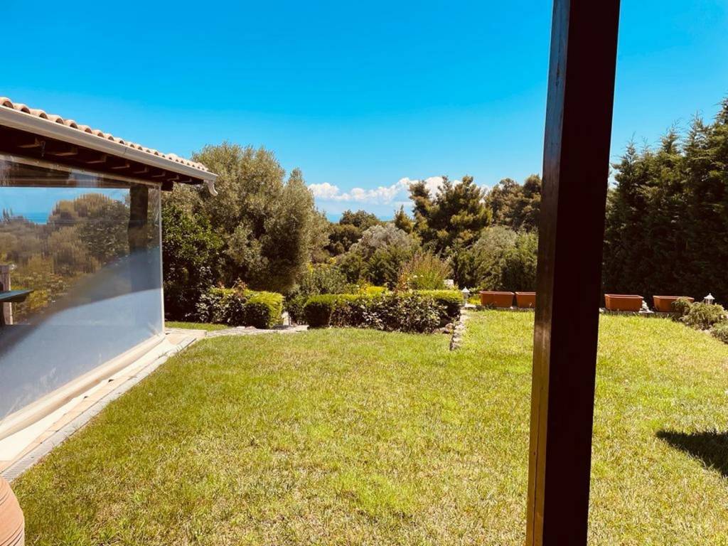 Premium-Class Cottage in Kriopigi with Panoramic Sea View A fully furnished, detached premium-class home is offered for sale, located in the picturesque and environmentally clean area of Kriopigi. Its elevated position provides stunning sea views, low humidity, and a peaceful atmosphere surrounded by lush greenery and forest. Main House (100 m²): A thoughtfully designed two-story residence featuring: a spacious living room combined with a kitchen 2 comfortable bedrooms 2 modern bathrooms balconies with scenic views Guest House (25 m²): A separate unit, ideal for guests or rental use: bedroom bathroom Outdoor Area & Amenities: large terrace with a summer kitchen and barbecue area covered parking beautifully landscaped garden with fruit trees (oranges, apricots, etc.) fireplace and air conditioning for year-round comfort The house is built with high-quality, premium materials, ensuring durability and a high standard of living. Location: 5 minutes by car to the village center 10 minutes by car to the beach Advantages: An excellent choice for both permanent residence and investment with rental potential. This property perfectly combines comfort, privacy, and natural beauty — a rare opportunity on the Halkidiki real estate market. To share