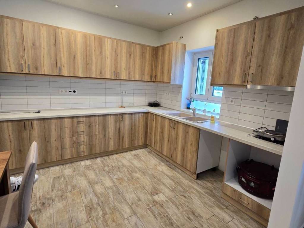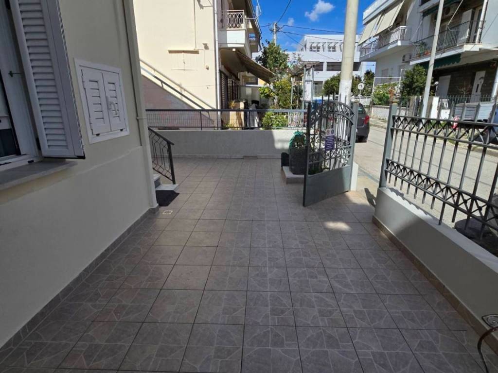 Ισογειο διαμερισμα το οποιο ανακαινισθηκε τωρα,με μεγαλο σαλονι ενιαιο με την τεραστια κουζινα,2 υπνοδωματια,πολυ μεγαλο μπανιο,και 2 μικρες αποθηκες οι οποιες ευρισκονται μεσα στο διαμερισμα.Σε ολο το σπιτι υπαρχει ψευδοροφη με φωτιστικα οροφης LED,ενω στα υπνοδωματια υπαρχουν 2 διπλα κρεβατια με τα κομοδινα τους.2 μικρες αποθηκες με ντουλαπια υπαρχουν μεσα στο σπιτι ενω στον χωρο της κουζινας υπαρχει τραπεζαρια με καρεκλες.2 καινουργια κλιματιστικα φροντιζουν για θερμανση και δροσια το καλοκαιρι.Η πλακοστρωτη αυλη περιβαλει ολο το διαμερισμα τοσο εμπρος οσο και πισω,και πριν απο την κυρια εισοδο υπαρχει αυλοπορτα. ΟΙΚΟΣΤΕΓΗ ΜΕΣΙΤΙΚΟ