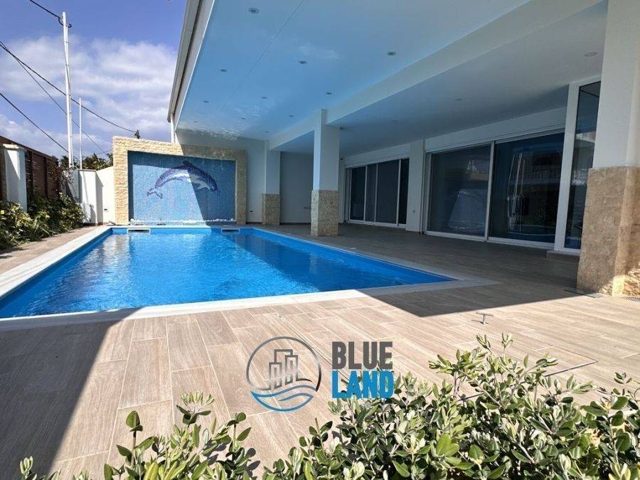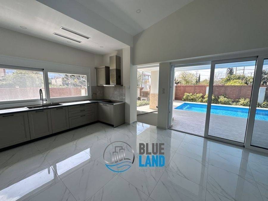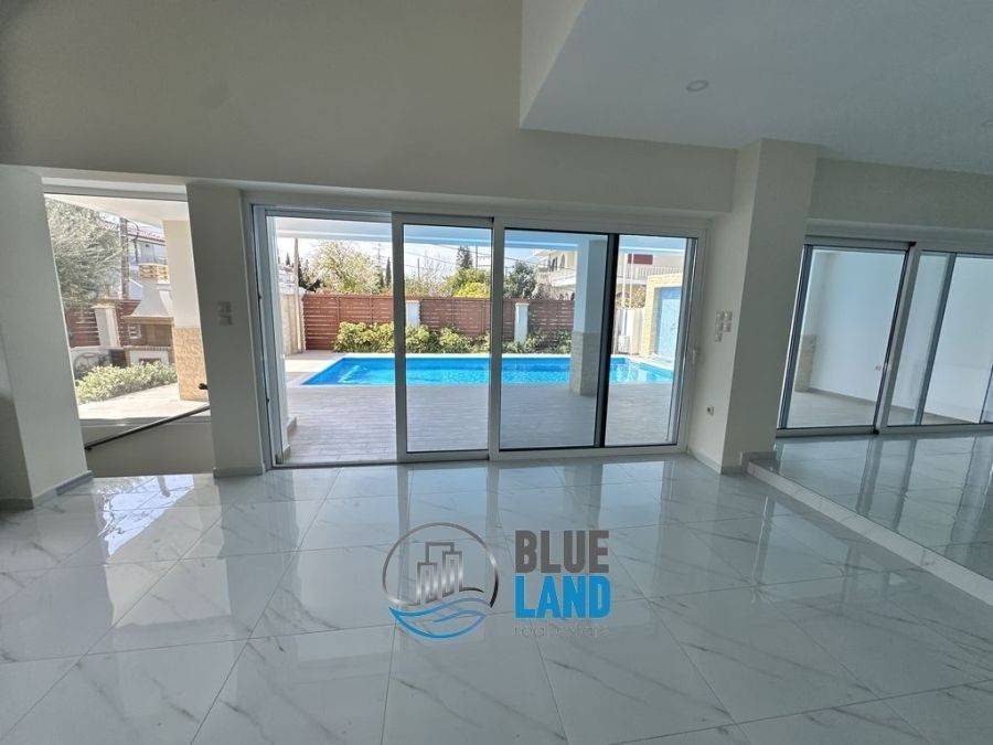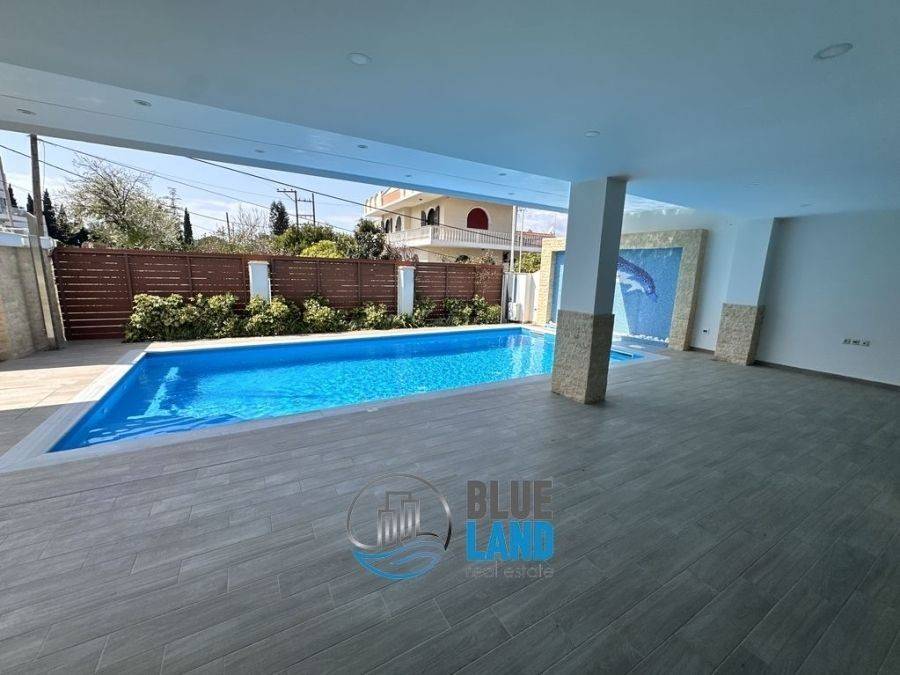 Rio, Agios Vasileios: A luxurious, newly built corner house with a total area of 315 sq. m., spread over 3 levels, is available for sale. The residence features a total of 5 bedrooms, 2 kitchens, and 2 living rooms, as well as 3 bathrooms and an additional WC. Additionally, it includes a storage room, a playroom, a beautiful garden with a BBQ, a swimming pool, and outdoor parking. The ground floor consists of a living room, kitchen, one bedroom, a bathroom, and a WC. On the same level is a separate space of approximately 45 sq.m., ideal for guests or use as a separate apartment. The semi-basement level, with a total area of 140 sq.m., features 2 bedrooms, a large space that can be used as a playroom or gym, a bathroom, and a storage room. The property features independent heating with a fan coil system, an energy-efficient fireplace, air conditioning, aluminum window frames with double-pane glass, a security door, an alarm system, and a solar water heater. Its location is particularly advantageous as it is close to public transportation stops, schools, and a supermarket. Price: €1,800. Blueland Real Estate, Contact Phone: 2611811812, email: blueland.patra@gmail.com