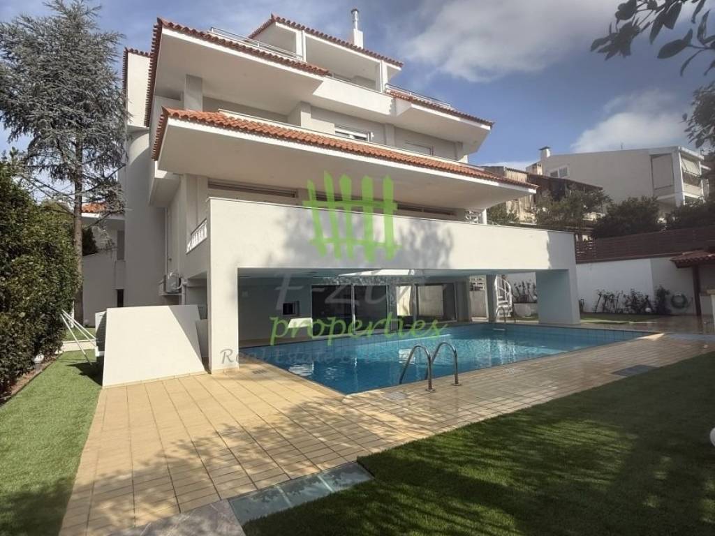 Excellent luxury villa on a 798sqm plot with a 54sqm swimming pool and a landscaped garden with lawn, trees and bbq. The villa has large reception areas, separate kitchen with Miele appliances, huge living room, 6 bedrooms (2 master), roof garden with bbq, elevator, 3 fireplaces, jacuzzi, 24mm oak floors, oak floors, Dionysos marble, thermal facade, maid`s room with kitchen, playroom, COPLAN double glazed windows, built-in radiators, 11 DAIKIN inverter A/C units, modern alarm system, 500MB fiber optic internet, closed circuit video door entry, 300 liter solar panel and new electrical equipment. The garage accommodates 3 parking spaces with a remote controlled door, beautiful property in an excellent quiet location