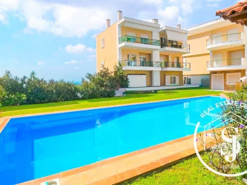 Apartment For sale in Kassandra - Kriopigi. The Apartment is 60 sq.m. and it is located on a plot of 1.500 sq.m.. It consists of: 2 bedrooms, 1 bathrooms, 1 kitchens, 1 living rooms. The property was built in 2004. Its heating is Central with Oil, Air conditioning are also available, it has Alluminum frames with Single windows, the energy certificate is: E and its floors are Tiles. The property's status is: Very good condition, Excellent condition, it is close to Sea, Seaside, School, Square, Church, Super Market, City Center, 800 Meters from sea, it has Nature, Openness, Good view. The Apartment is Whole floor, Painted, Furnished, On Corner, Airy, it is suitable for Holiday home, Investment, Revenue source and it also has the following unique features and advantages: Window Screens, Swimming pool, Garden, Security door, BBQ, Grass, Trees, Pets allowed, Quiet neighborhood, Porch. Price: €170.000. Real Estate Center Susan Jameson, contact phone: +302374063603, email: info@realestatecenter.gr, website: https://realestatecenter.gr