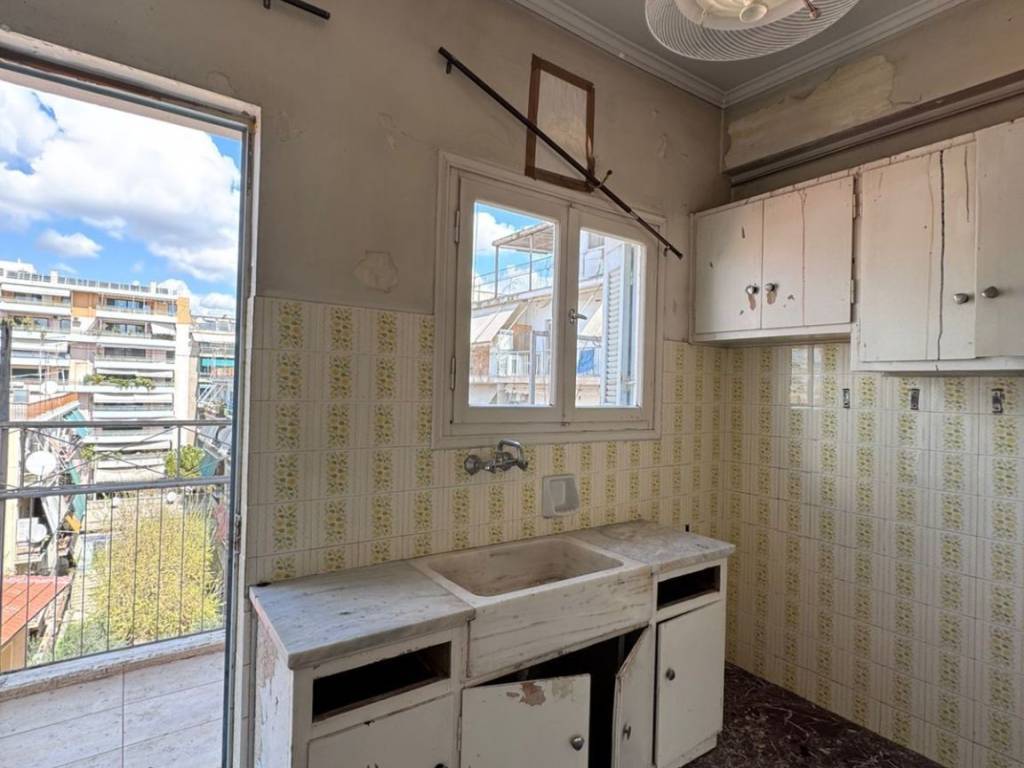 Διαμέρισμα 4 ου ορόφου,αποτελούμενο από 2 υ/δ , κουζίνα , μπάνιο, wc, σαλονοτραπεζαρία, μπρος -πίσω μπαλκόνια. Χρήζει ανακαίνισης. Δίπλο σε πάρκο και σταθμό ΗΣΑΠ.