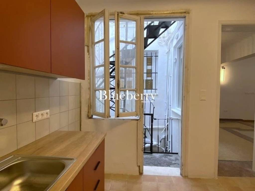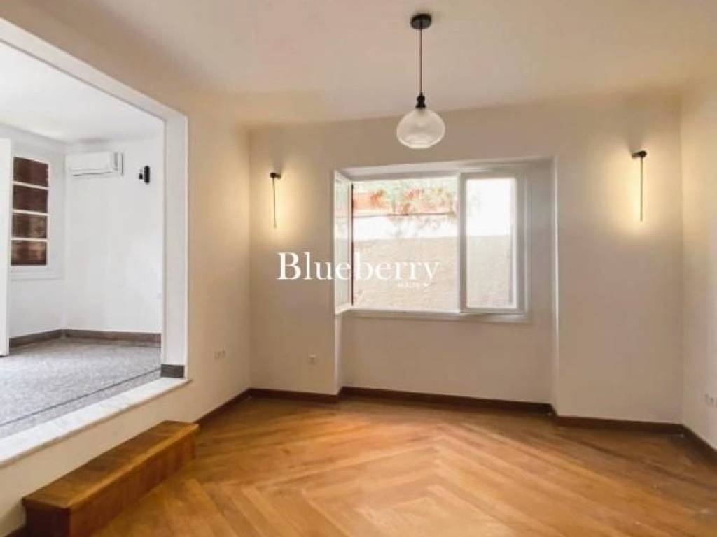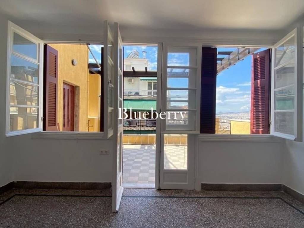 Full-Floor Penthouse Apartment on the 3rd Floor with 20 sq.m. Terrace and Open Views – Exarchia Access to the third floor is provided via an internal wooden staircase from the second level, offering a strong sense of privacy and uniqueness to the apartment. The exposed stone wall with its authentic texture, the original wooden steps, and the curved design of the staircase create an atmosphere of distinctive character, blending historical charm with modern comfort. An apartment of exceptional aesthetics, featuring a unique architectural identity and a high level of comfort. The spacious master bedroom includes an en-suite bathroom, built-in wardrobes, and direct access to a large terrace, while the second bedroom offers additional office space and a private balcony. The property is complemented by a second, contemporary bathroom and a separate kitchen. The living and dining area unfolds across two levels, creating an impressive sense of space and flow, with the upper level directly connected to the terrace through a balcony door, functioning as a natural extension of the outdoor area. The generous 20 sq.m. terrace, complete with a pergola and unobstructed views, offers a rare sense of privacy and openness—ideal for relaxation or refined entertaining in the heart of the city. The 2026 renovation includes new bathrooms, a new kitchen, updated plumbing and electrical systems, as well as maintenance of the floors, doors, and window frames, ensuring all modern amenities within a space of distinctive architectural character. Each room is equipped with an independent air conditioning unit for both heating and cooling. The apartment is offered unfurnished, allowing the tenant to personalize it according to their preferences, and is delivered with electrical appliances. The apartment is part of a preserved building dating back to 1933, constructed by the renowned actor Michalis Iakovidis, son of the eminent Greek painter Georgios Iakovidis. Historically, the building served as a meeting place for prominent figures of the arts and letters, hosting, among others, Kostis Palamas, Odysseas Elytis, Yannis Ritsos, Titos Patrikios, and Manos Hadjidakis, thus endowing the property with significant historical and cultural value. The location is exceptional: close to public transportation and just a 12-minute walk from Victoria metro station. Within a short distance are Exarchia Square, independent exhibition spaces, bookstores, and distinctive dining venues, as well as important institutions such as the National Technical University of Athens and the Benaki Museum. Strefi Hill, ideal for walks and leisure, is just 4 minutes away. The building preserves authentic architectural features of its era, offering privacy, functionality, and urban quality—ideal for tenants seeking residence in a space with character and historical significance. Exclusively available through our real estate office. Rental Price: €1,600/month, Blueberry Realty, Tel.: +30 210 7253300, +30 6947 566912, Email: info@blueberry-realty.com